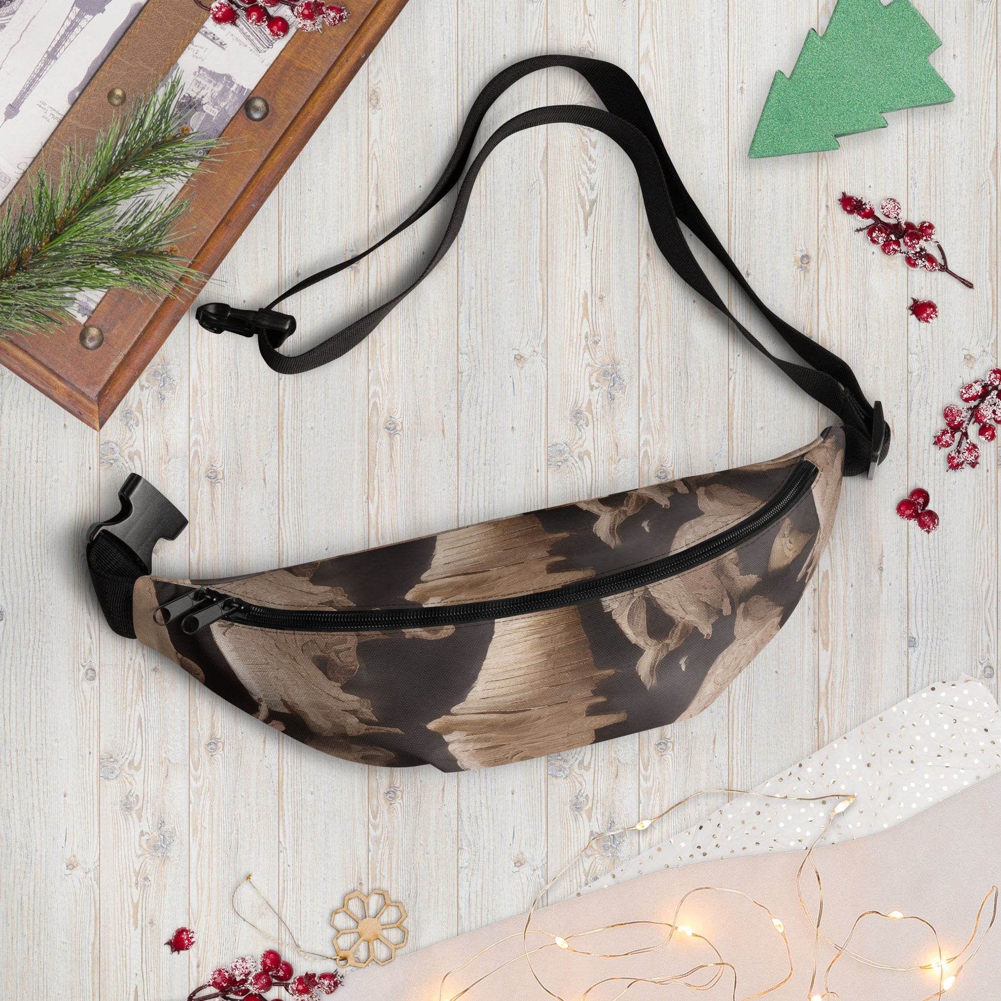 Step into a world of adventure with our "Desert Dreams" fanny pack, a stunning accessory that captures the essence of ancient mystery and natural wonder. Adorned with intricate fossil-inspired patterns in earthy tones of sand and stone, this fanny pack is not just a practical item—it's a bold statement piece that elevates any outfit. Perfect for art gallery openings or outdoor summer festivals, it combines functionality with a timeless elegance that sets you apart from the crowd.