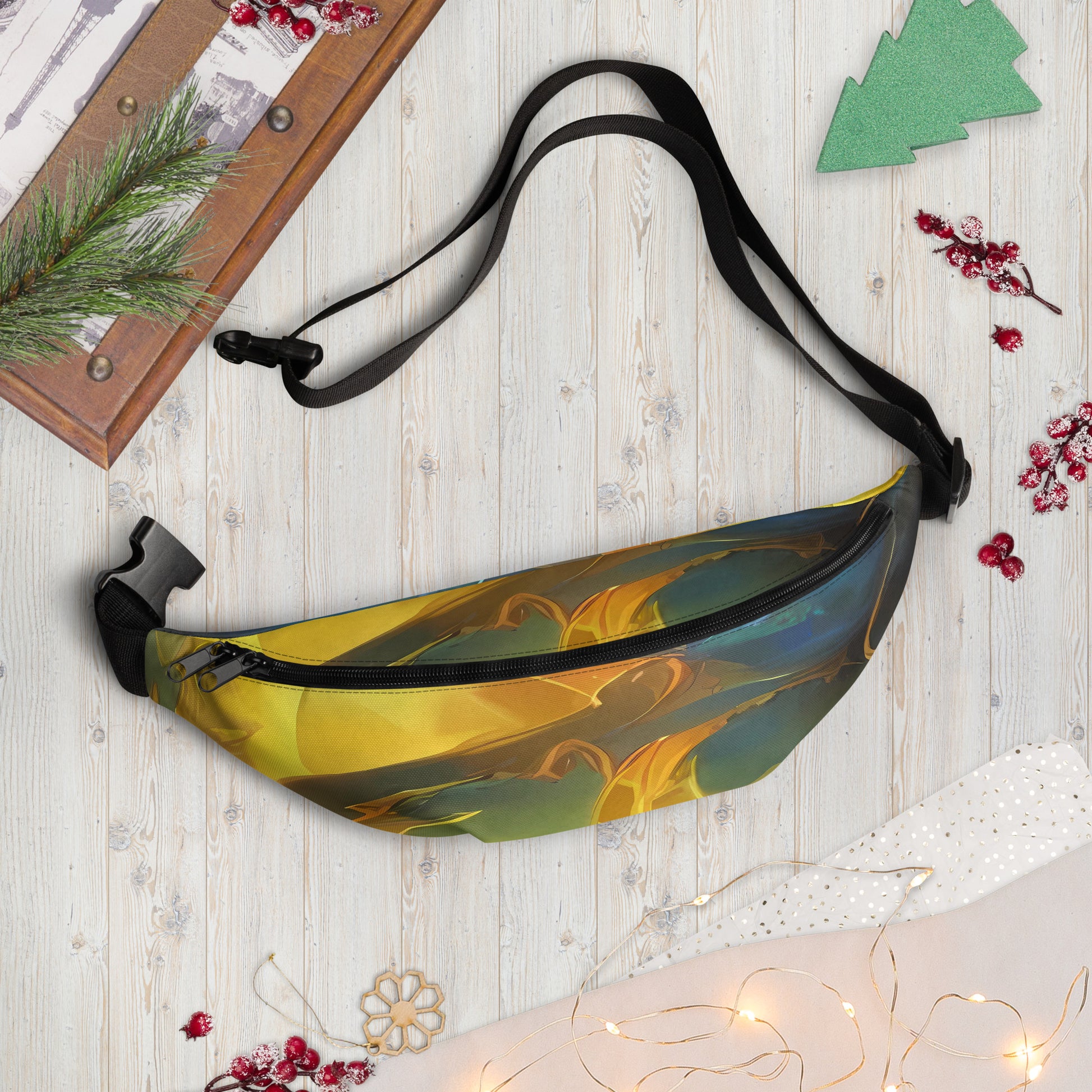 Embrace your whimsical spirit with our "Ethereal Glow" fanny pack, a stunning accessory that captures the enchanting interplay of rich dark blues and vibrant yellows, reminiscent of a starlit sky kissed by the warmth of a sunset. This custom-designed piece not only showcases a mesmerizing AI-art pattern but also offers the perfect blend of convenience and style. Compact yet spacious, it's designed for those who appreciate the elegance of fine art intertwined with nature's expressive palette. Elevate your festival looks or spring outings with this unique statement piece!