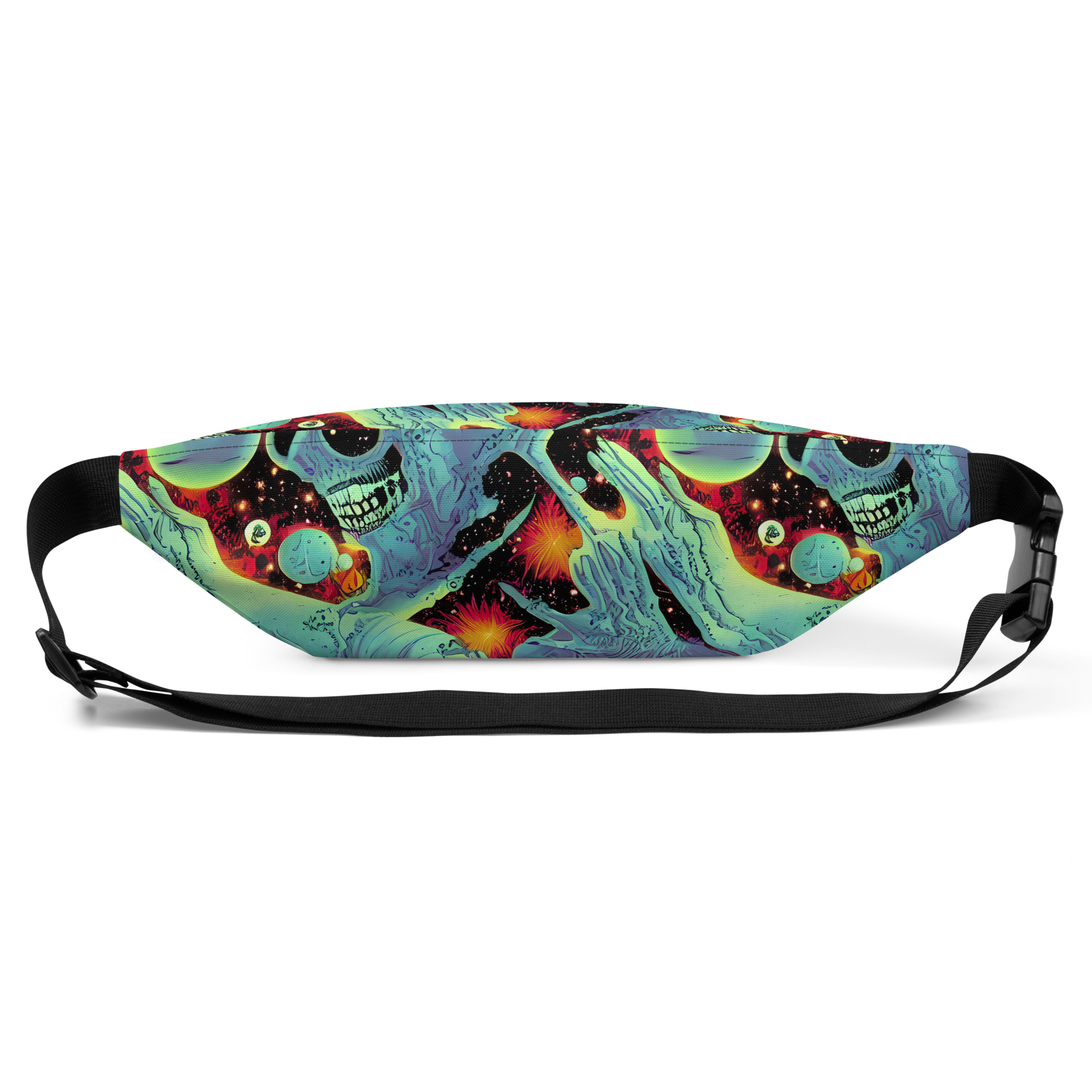 Step into a world of surreal wonder with our custom-designed fanny pack, featuring an electrifying blend of neon turquoise skeletal forms and cosmic starbursts. This vibrant accessory is perfect for music festivals, night events, and adventurous outings, making a bold statement wherever you go. Compact yet spacious, weather-resistant, and handcrafted with meticulous detail, it's the ultimate blend of style and practicality.
