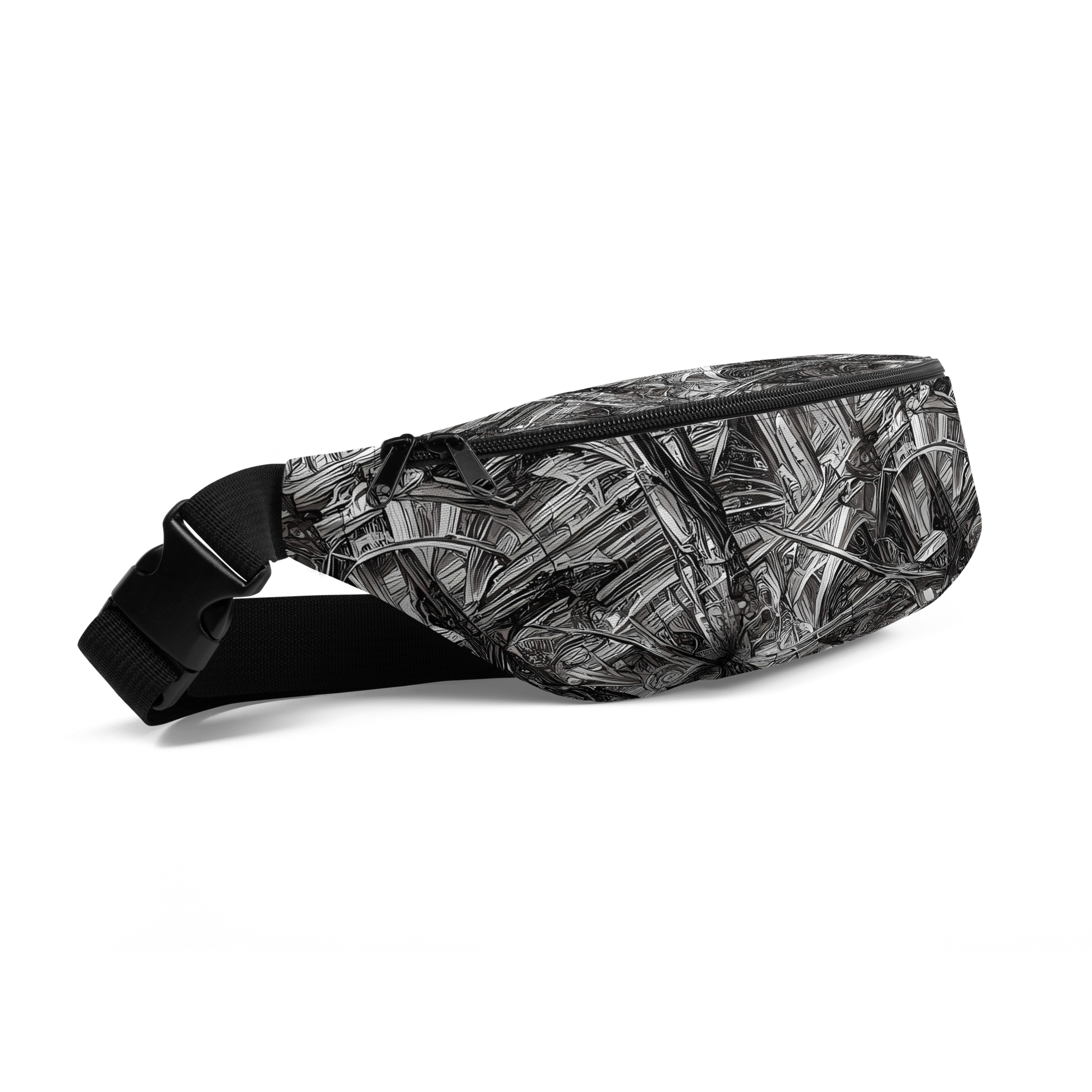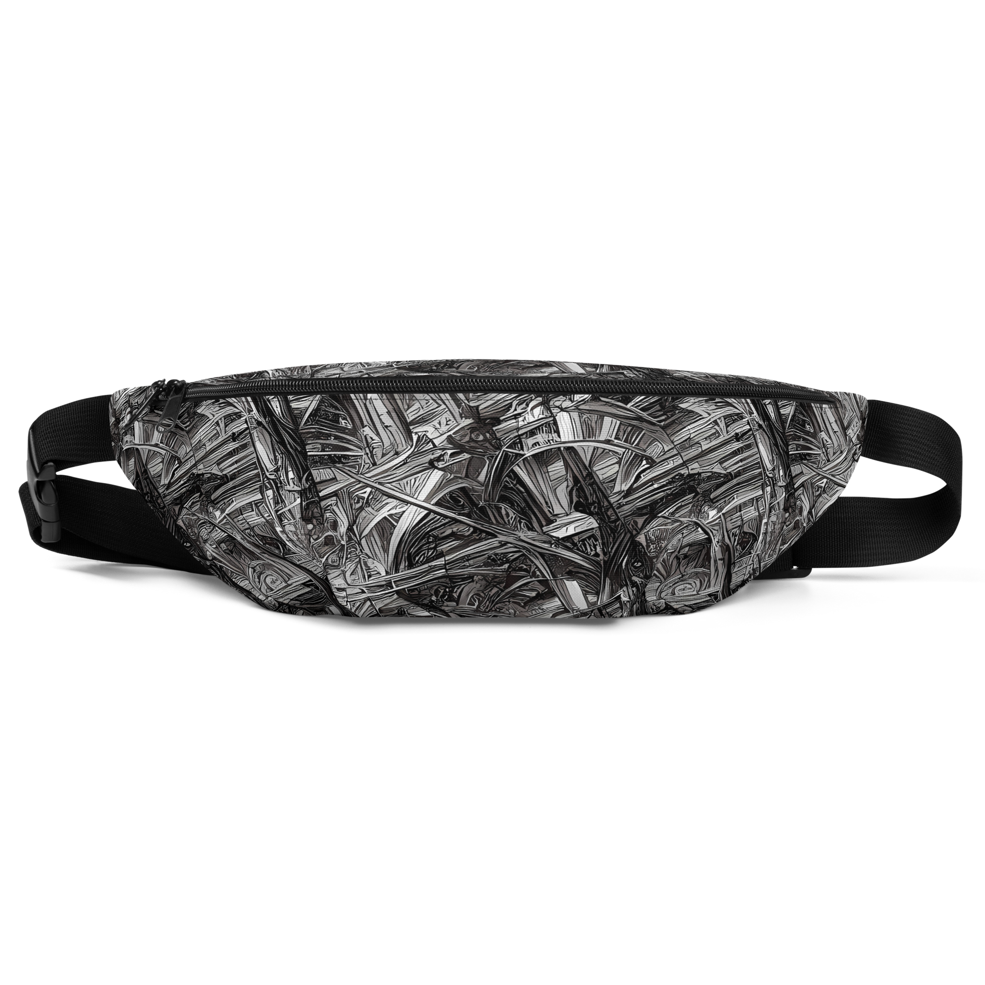 Elevate your style with our custom-designed fanny pack, featuring a mesmerizing pattern of intricate, swirling arches and structures in monochromatic hues. This dynamic design evokes dark elegance and mystery, making it the perfect accessory for avant-garde events, gothic-themed gatherings, or autumn and winter wear. Compact yet spacious, weather-resistant, and handcrafted with the highest quality, this fanny pack is as unique and bold as you are.