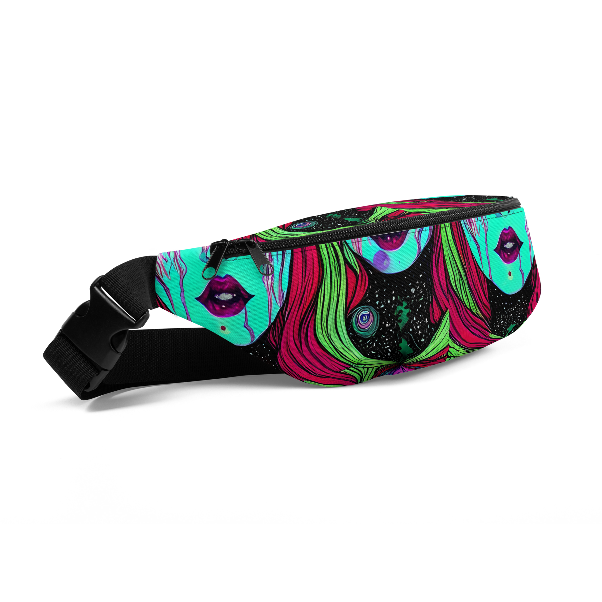 Unleash your fearless style with our "Luminous Nightfall" fanny pack, where cosmic artistry meets everyday functionality. This electrifying accessory is adorned with a striking pattern of vivid turquoise, magenta, and neon green, intertwined with cosmic black and ethereal purple. It evokes mystery and bold self-expression, perfect for turning heads in vibrant urban nightlife or avant-garde events. Compact yet spacious, and crafted for all-weather adventures, this fanny pack is your ultimate companion for cooler seasons, adding an otherworldly allure to any wardrobe.