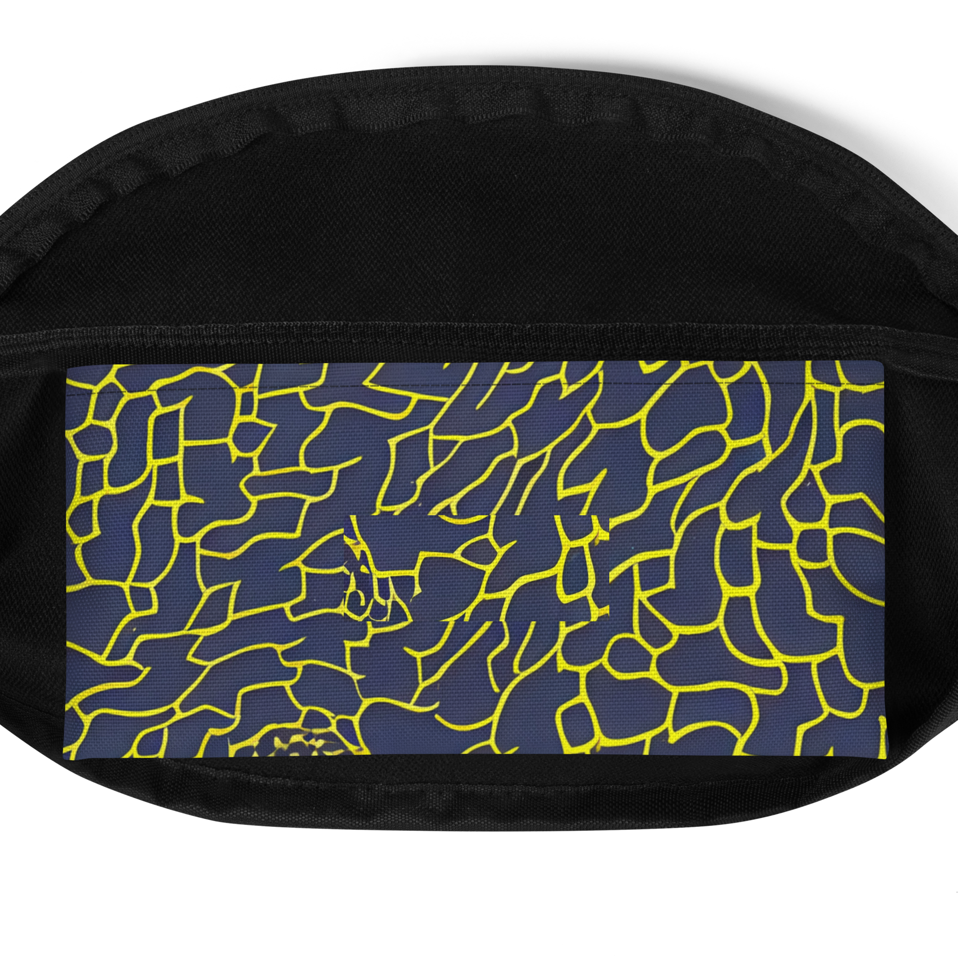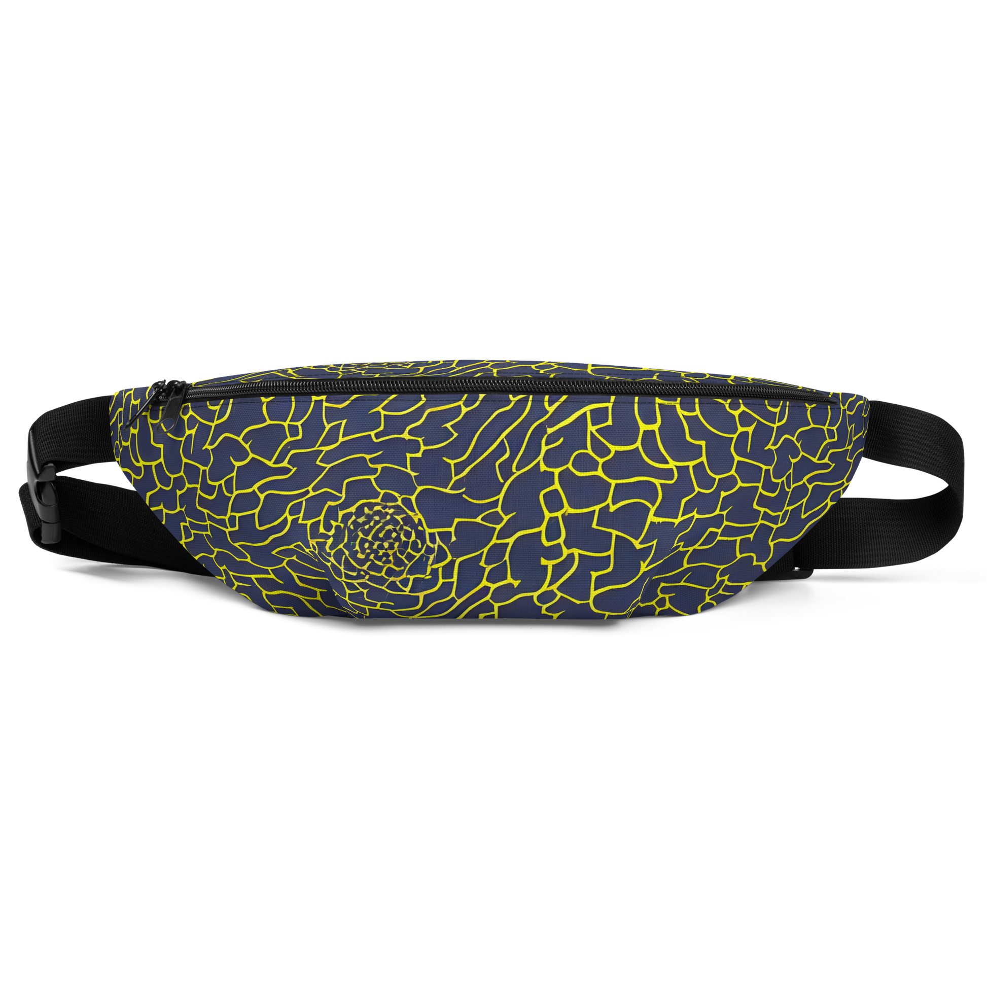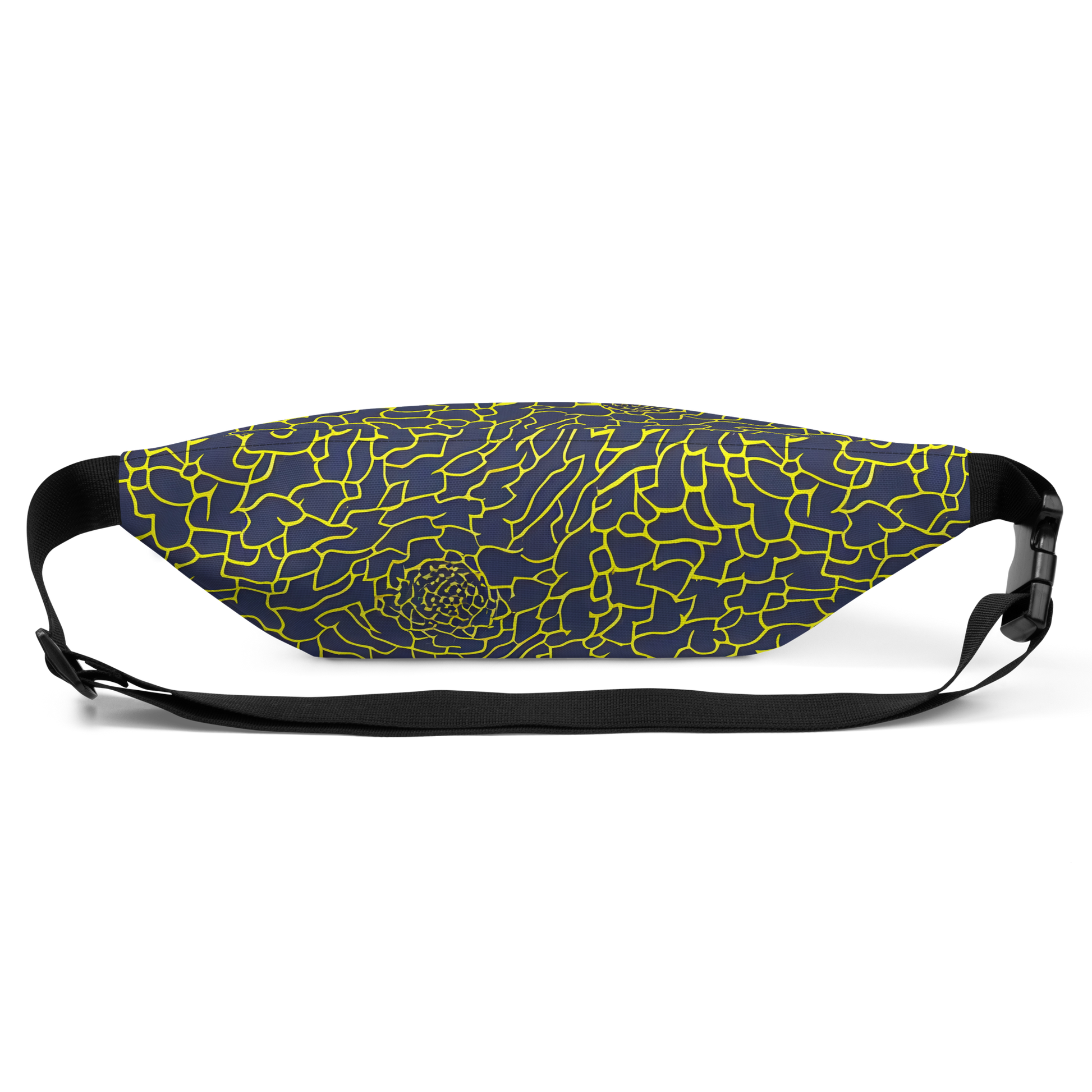 Immerse yourself in the enigmatic allure of our latest fanny pack, where the drama of a midnight blue canvas intertwines with electric yellow lines to form a labyrinth of style. This accessory isn't just a nod to the nocturnal; it's a masterpiece of sophistication and mystery, perfect for those who carry the night's intrigue with them. Whether gracing an evening soiree or making a statement at a creative gathering, this fanny pack is the quintessence of bold elegance for the fashion-forward individual.