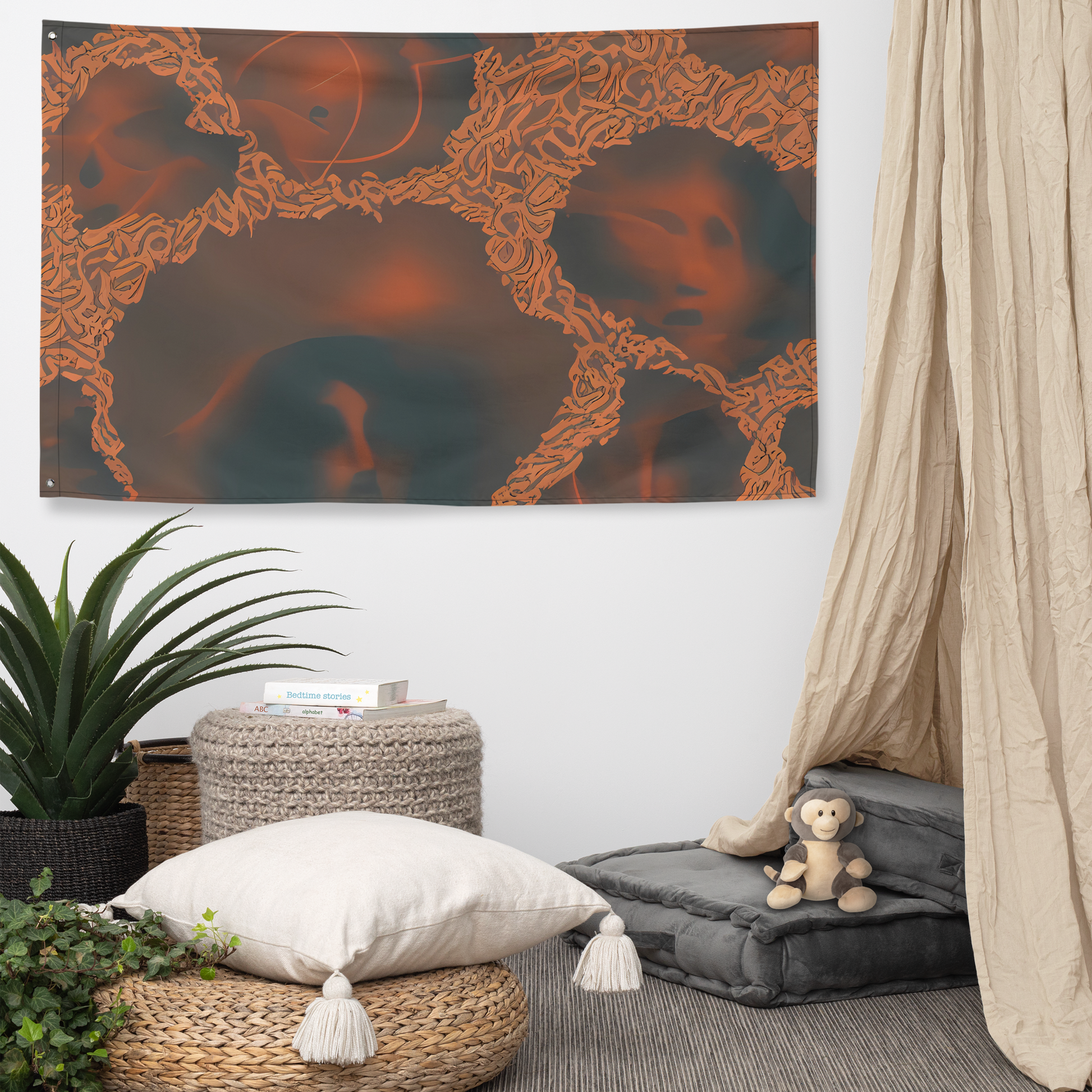 Transform your living space into a realm of artistic expression with our captivating flag, adorned with an enigmatic blend of abstract artistry and subtle figuration. Ethereal visages peek through a complex, lace-like canvas of warm burnt orange and deep maroon, creating a mesmerizing display that invites mystery and introspection. Ideal for those who appreciate the profound and surreal, this flag is a perfect complement to autumnal decor and avant-garde gatherings. Crafted with care, it is more than a flag—it's a statement of your unique aesthetic sensibilities.