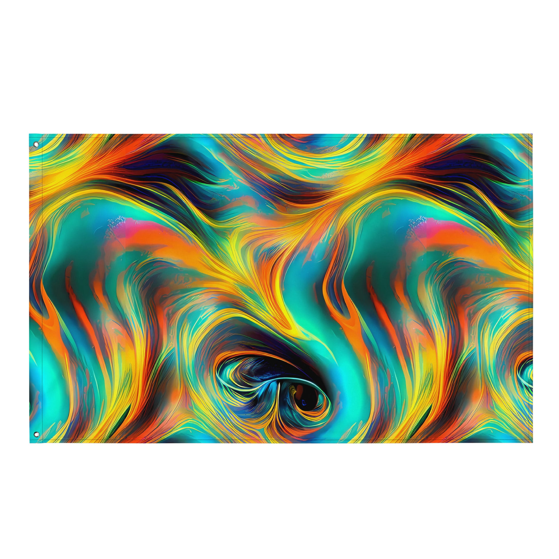 Ignite your space with the "Flameflow Artistry" flag, a stunning fusion of electric blue, fiery orange, and vivid teal that captures the essence of flames dancing in a mystical breeze. This mesmerizing design, with its smooth, flowing lines and hypnotic whirls, brings a sense of movement and passion to any room. Perfect for art lovers and festival-goers alike, this unique flag is not just a decoration; it's a bold statement piece that transforms your house into a home filled with creativity and flair.