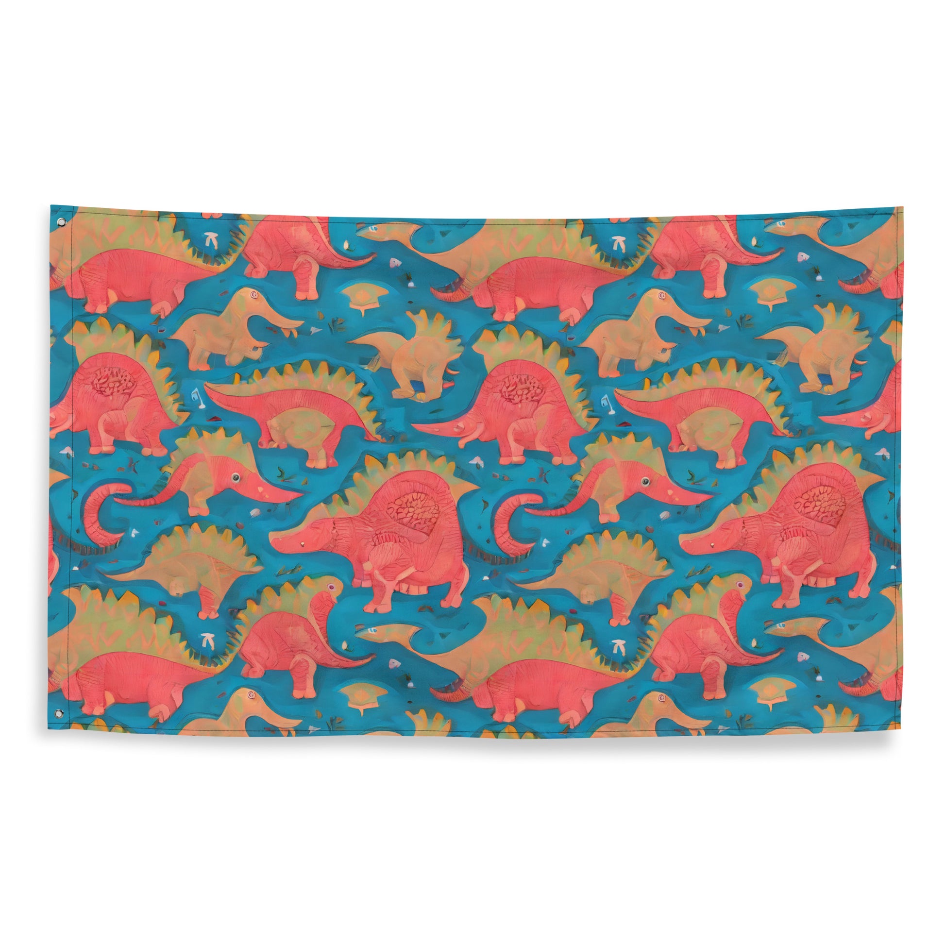 Transform your space into a vibrant celebration of whimsy with our "Jurassic Jive" flag! Adorned with playful coral and peach-toned dinosaurs dancing across a rich turquoise backdrop, this unique flag captures the spirit of adventure and nostalgia, making it the perfect statement piece for summer festivals or casual beach outings. Crafted from durable polyester, it ensures your decor remains bright and lively for years to come. Elevate your home with a touch of fun-loving personality!