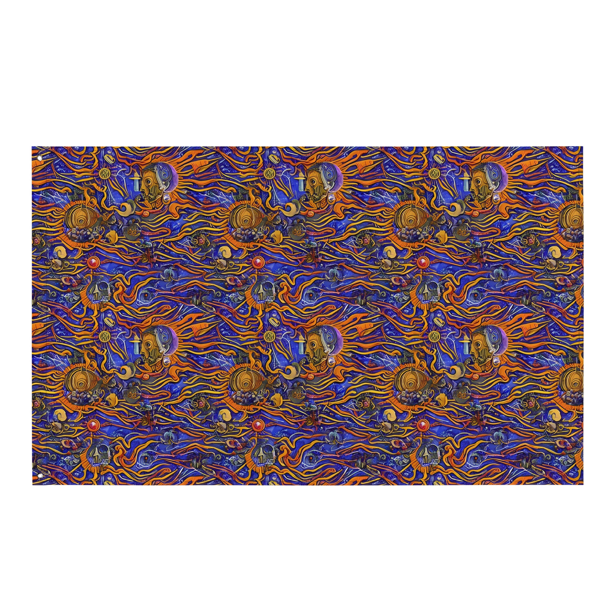 Transform your living space into a vibrant sanctuary with our "Mantegna Swirl" flag, a stunning fusion of deep blues and fiery oranges that captures the essence of cosmic dynamism. This unique design, inspired by the grandeur of Renaissance art with a modern psychedelic twist, exudes an avant-garde spirit that is perfect for artistic gatherings or as a bold statement piece in any season. Crafted from durable polyester, this flag is not only a striking decor element but also a lasting addition to your home that won’t crease or shrink.