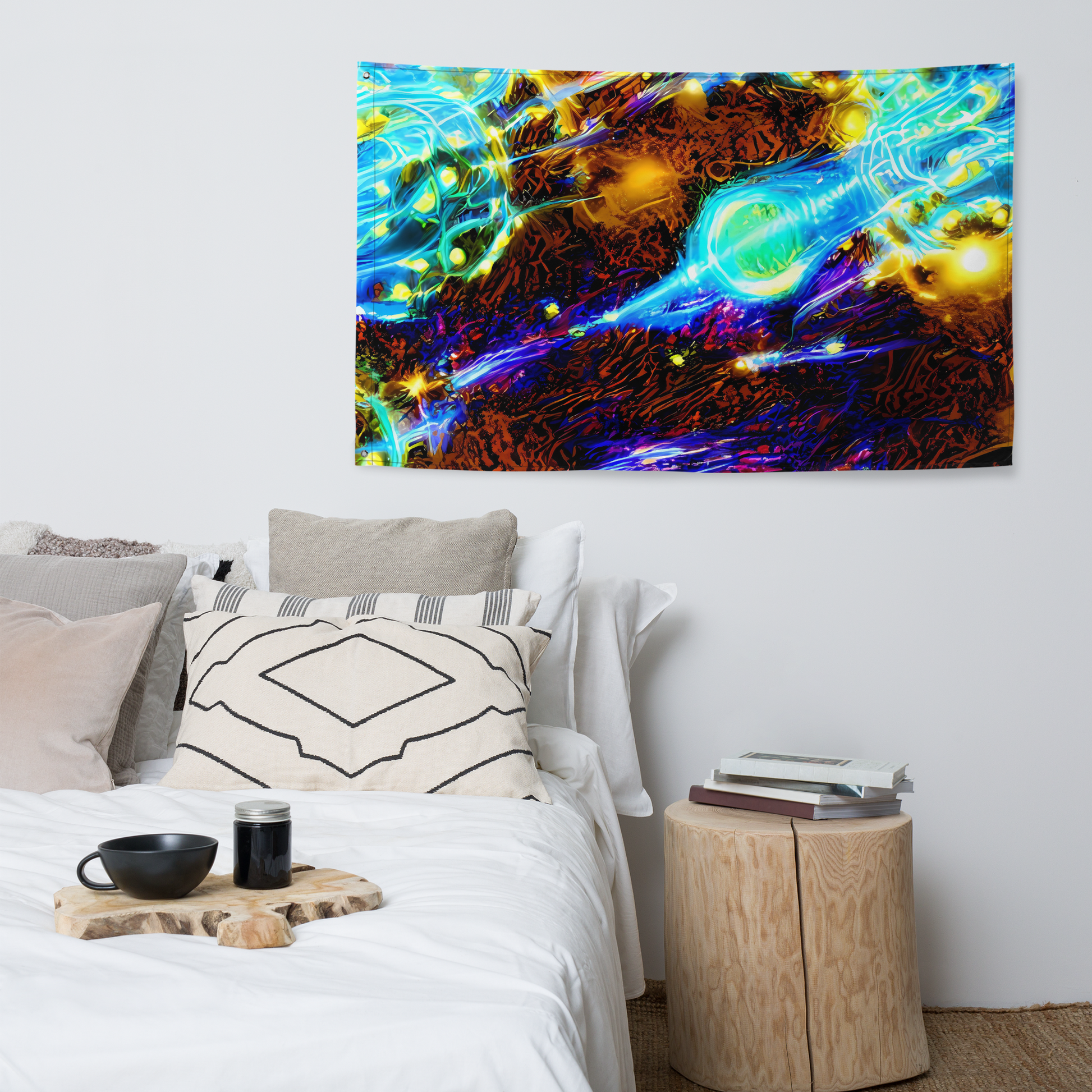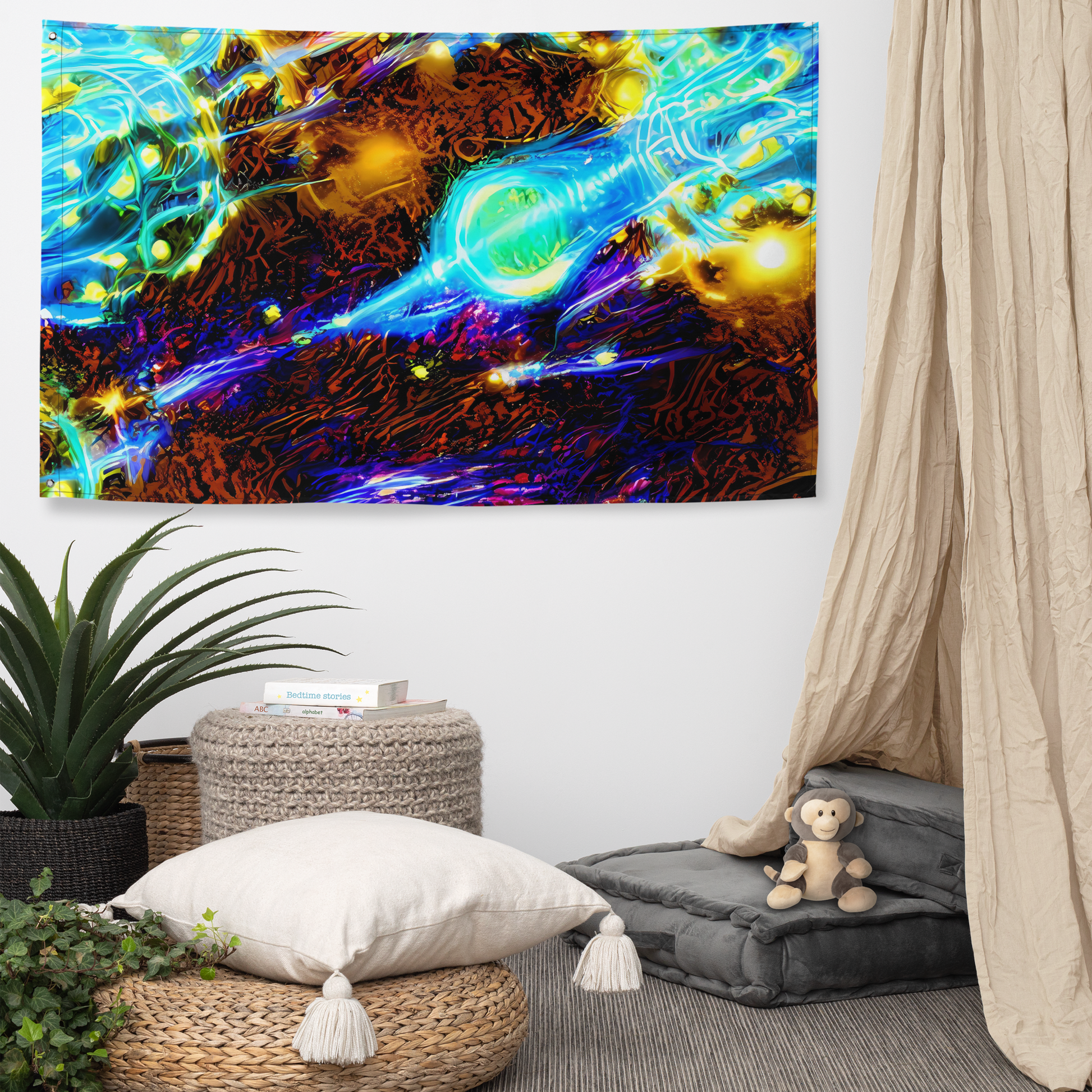 Immerse yourself in a world of electrifying beauty with our exclusive flag, where the cosmic dance of electric blues, radiant yellows, deep crimsons, and fiery oranges come to life. Each flag is a canvas of pulsating energy and dynamic movement, capturing the essence of expressive brushwork for those who dare to be different. Transform any space into a vibrant spectacle, ideal for music festivals, art events, or simply to make a bold statement in your personal haven.