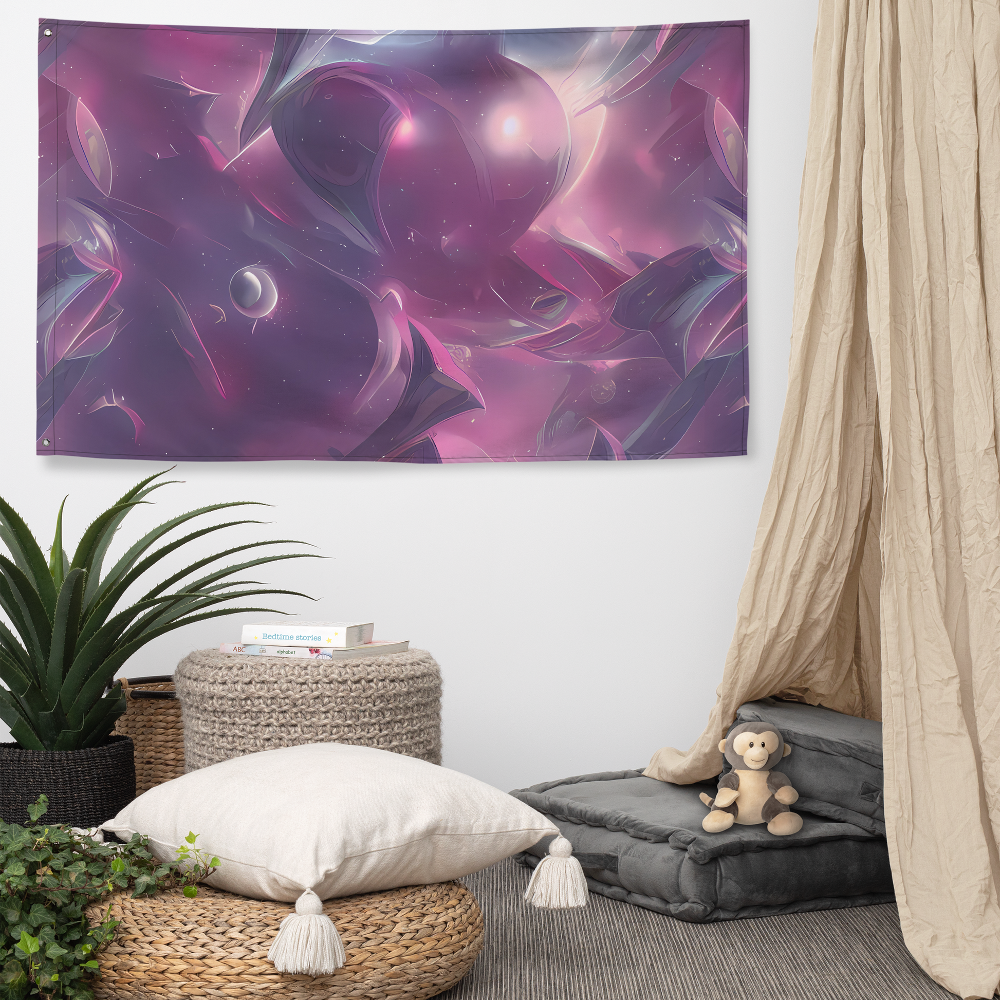 Transform your living space into a portal of imagination with our stunning flag, draped in a pattern that captures the essence of cosmic elegance. With a blend of iridescent purples and pinks, interlaced with dazzling blues, this flag is your ticket to a visual journey through the stars. The glossy, fluid shapes capture the movement and mystery of the night sky, making it an essential piece for those who wish to express their creativity and stand out at any nighttime gathering. Embrace the cooler seasons with a touch of fantastical charm that promises to envelop your environment in otherworldly sophistication.