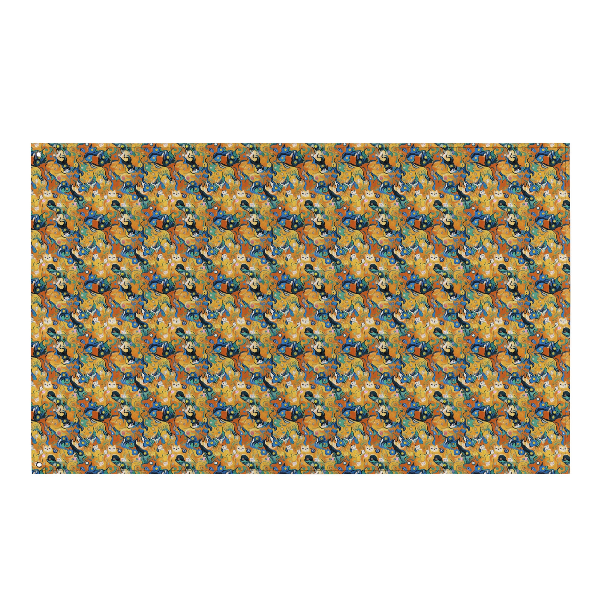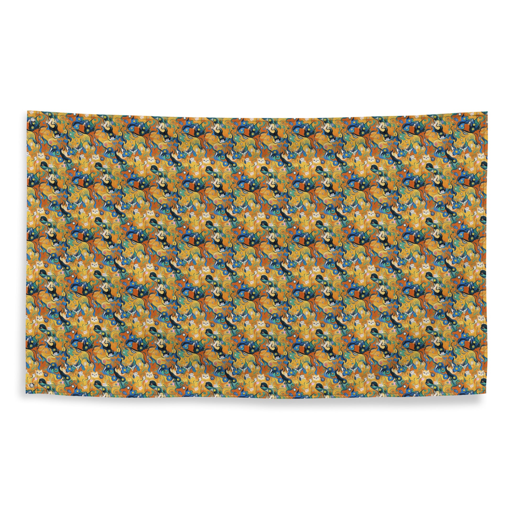 Transform your space into a vibrant oasis with our "Whimsical Feline Dance" flag! This stunning piece features a mesmerizing tapestry of swirling blues, greens, and fiery oranges, capturing the playful essence of kittens in a dreamy, Van Gogh-inspired landscape. Perfect for art lovers and those with a whimsical spirit, this flag will add a touch of joy and movement to any wall, making it a standout centerpiece for your home or gatherings. Crafted from durable polyester, it promises to maintain its beauty and vibrancy for years to come.