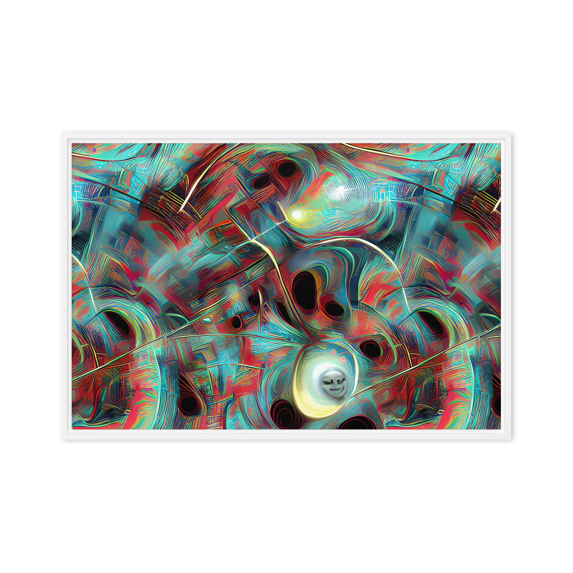 Transform your space with this stunning framed canvas featuring a vibrant, surreal pattern of swirling, abstract shapes in a kaleidoscope of electric blues, fiery reds, and deep blacks, interspersed with whimsical, dream-like textures. Ideal for artistic events, festivals, or creative gatherings, this canvas evokes a sense of otherworldly wonder and playful curiosity. Perfect for bold, imaginative personalities who love to stand out with avant-garde flair. Crafted with a high-quality pine tree frame that gives a cool floating effect, and comes with rubber pads and hanging hardware for hassle-free installation. Elevate your decor with this head-turning piece today!