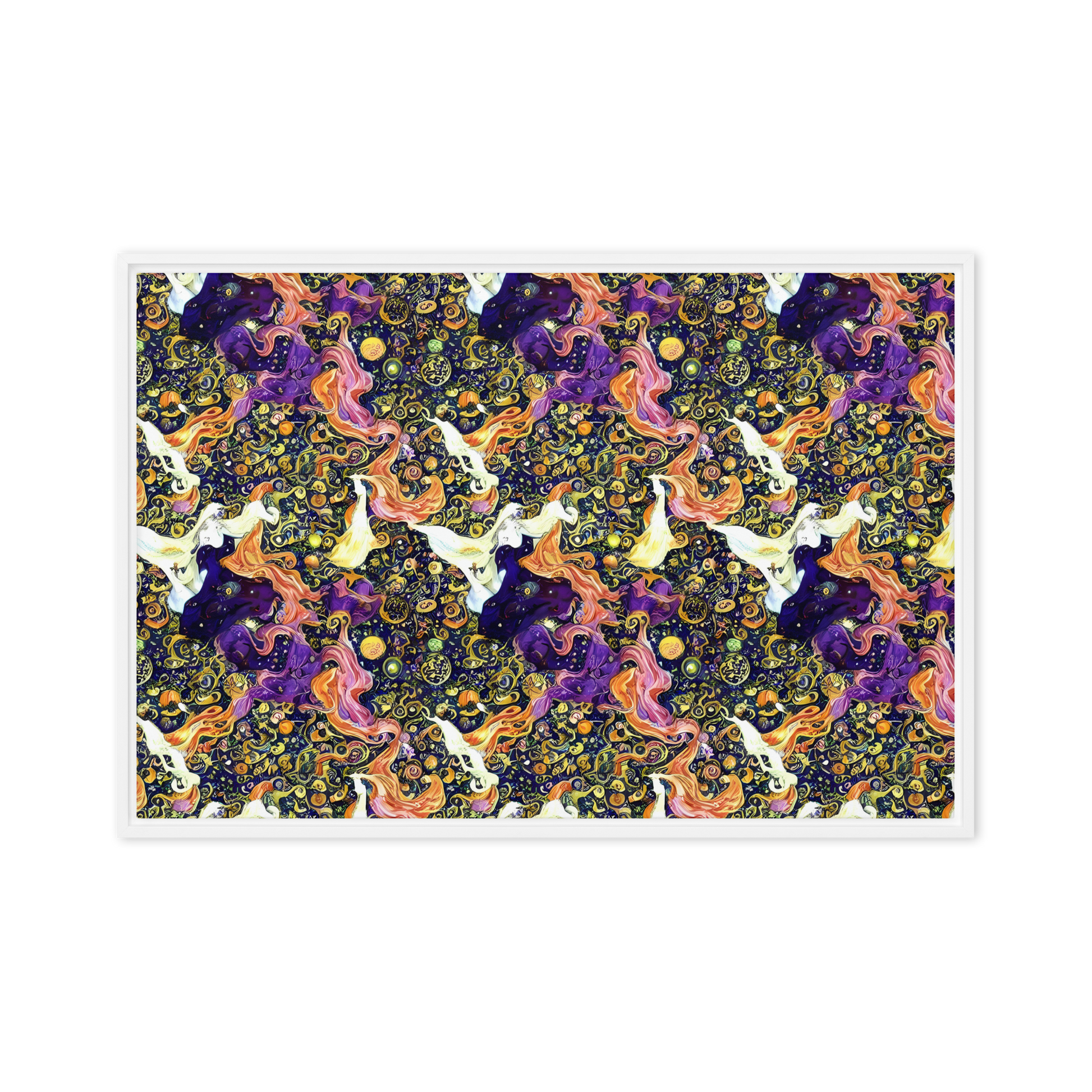 Transform your space with the enchanting "Ethereal Waltz" framed canvas, a stunning masterpiece that captures the essence of swirling galaxies and celestial dancers. Adorned in a vibrant palette of deep purples, fiery oranges, and cosmic golds, this artwork evokes a sense of movement and wonder, making it the perfect statement piece for those who embrace a bold and imaginative spirit. Ideal for evening soirées or artistic gatherings, let this captivating piece inspire your adventurous soul and elevate your decor to celestial heights!