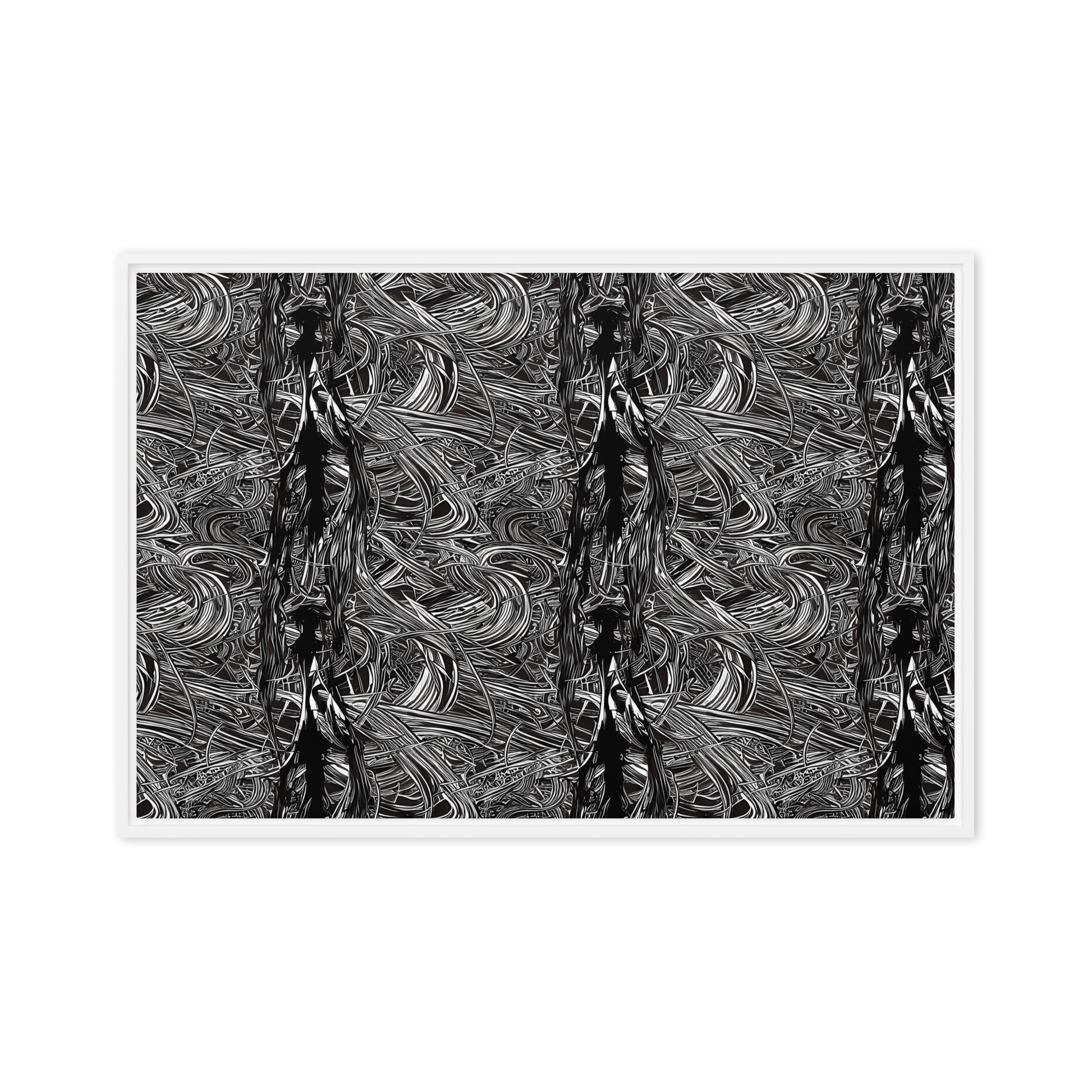 Transform your space with the stunning "Mesmeric Tangles" framed canvas, a striking blend of chaotic lines and intricate textures in monochromatic black and white. This artwork evokes a sense of depth and mystery, drawing the viewer into its dynamic, swirling shapes that are reminiscent of Tsutomu Nihei's captivating art style. Perfect for those who embrace bold creativity, this unique piece is ideal for avant-garde events, art exhibitions, or to elevate your urban streetwear aesthetic. With its high-quality pine tree frame and floating effect, this canvas is not just decor; it's a statement piece that will mesmerize everyone who enters your space!