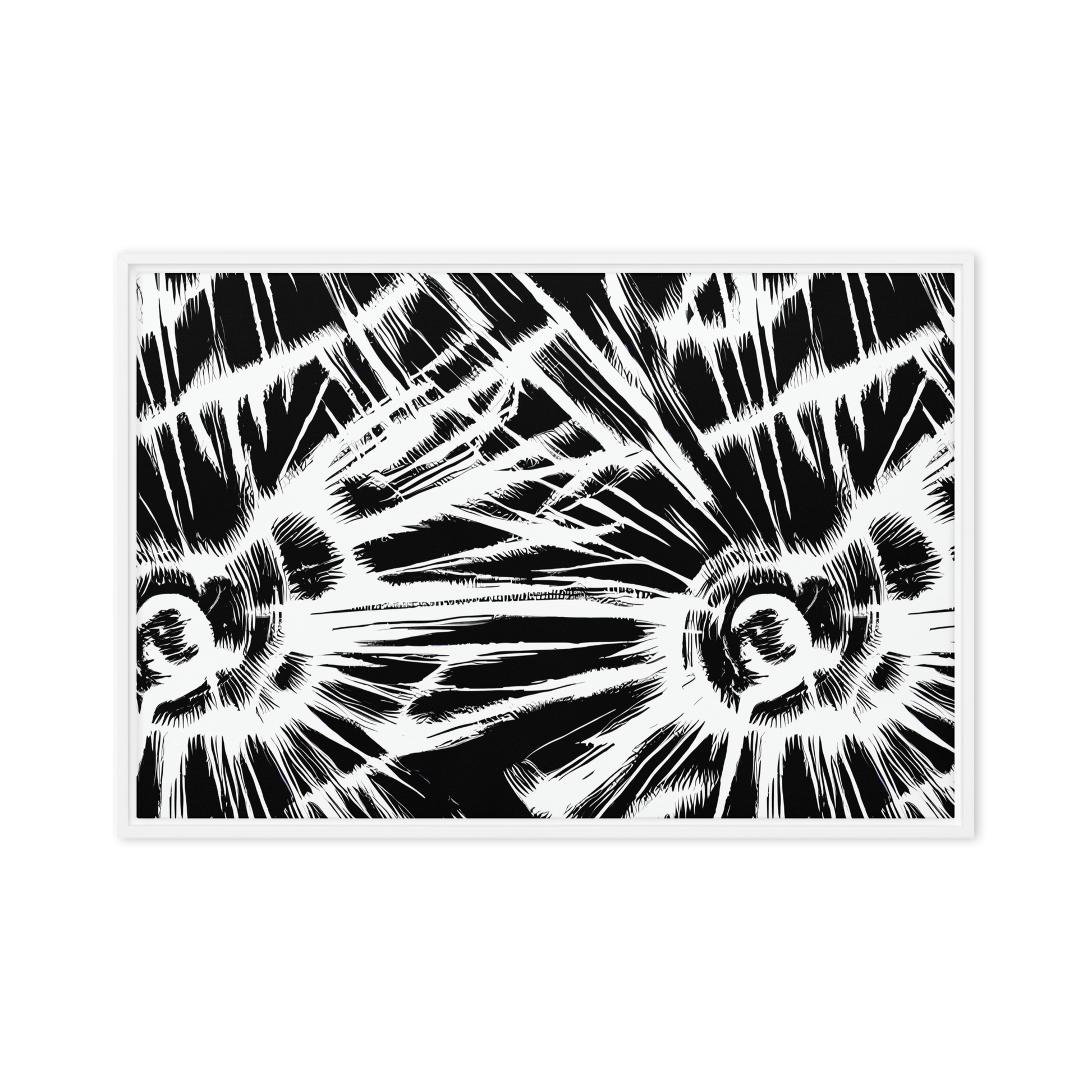 Transform your space with the electrifying "Silent Thunder" framed canvas, where bold black and white contrasts collide in a striking display of abstract energy. This stunning piece captures the essence of a storm with jagged lines and circular bursts, making it the perfect statement artwork for art galleries or urban music festivals. Ideal for the daring and creative, this high-quality canvas is not just a decoration; it's a conversation starter that brings intensity and modern edge to any room.