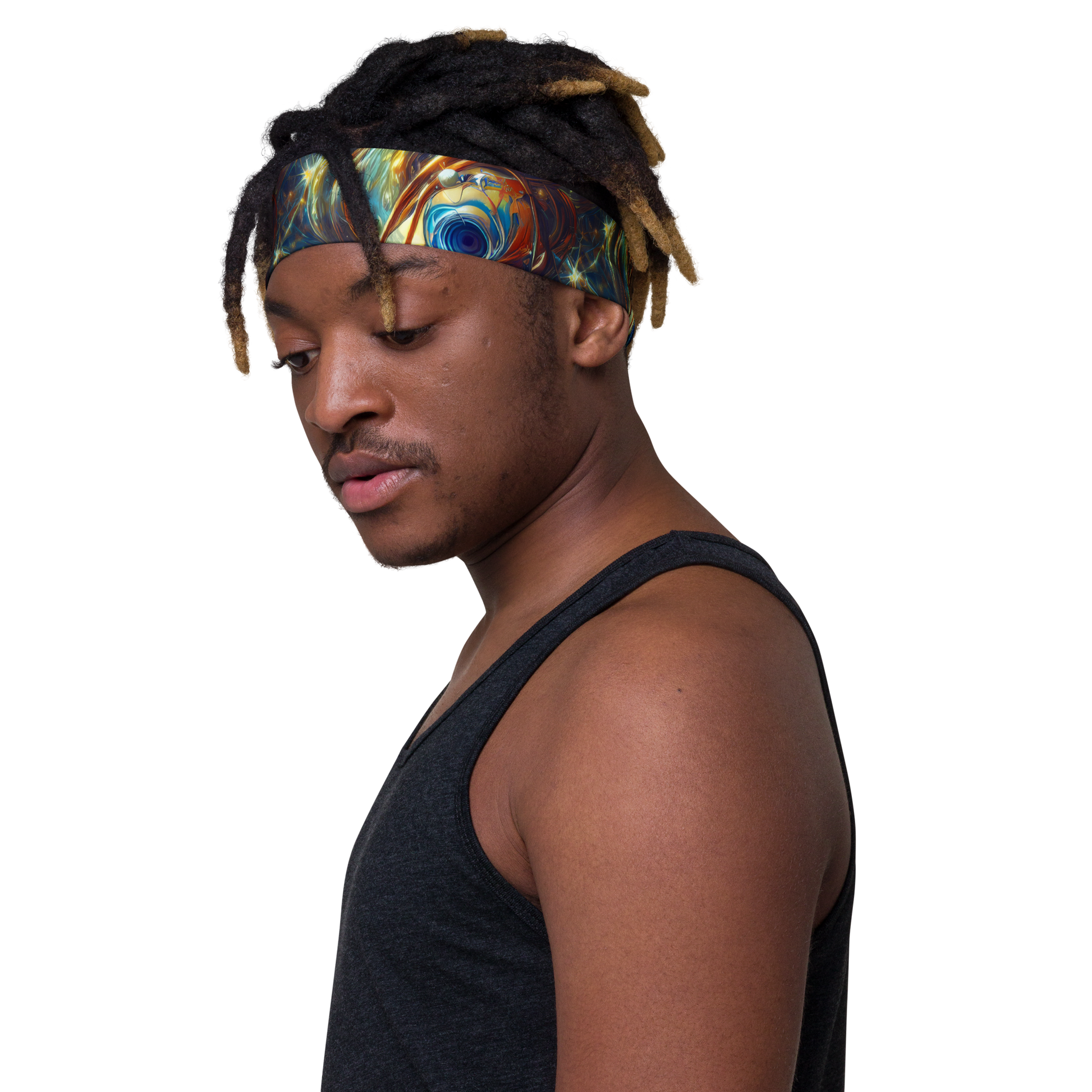 Elevate your style and comfort with this stunning headband, featuring a mesmerizing blend of deep cosmic blues, fiery oranges, and shimmering golds. Inspired by the vastness and mystery of deep space, this headband boasts a dynamic interplay of light and shadow, perfect for those who dare to be bold and imaginative. Whether you're powering through a workout or making a statement at an avant-garde event, this headband is your go-to accessory for the fall and winter seasons. Don’t miss out on this unique, custom AI-art generated design, printed all-over, custom cut and handmade by our experts!