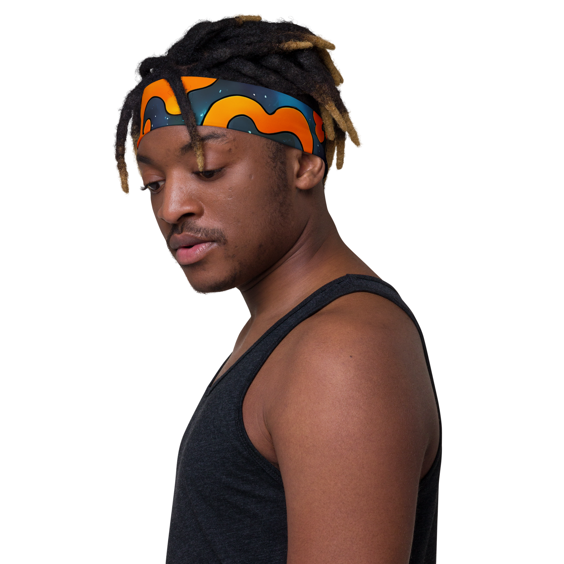 Embrace the mystery of the cosmos with our exquisite headband, featuring a mesmerizing design that intertwines the whimsy of orange amoeba-like shapes with the profound depth of a star-filled night sky. This accessory is the epitome of cosmic elegance, with a smooth, glossy finish that radiates celestial charm. It's the perfect companion for those who carry the universe within them, ready to make a bold statement at any creative soiree or to add a touch of autumnal flair to their ensemble. Experience the perfect blend of fashion and function, whether you're pushing the limits during a workout or accentuating your weekend style.