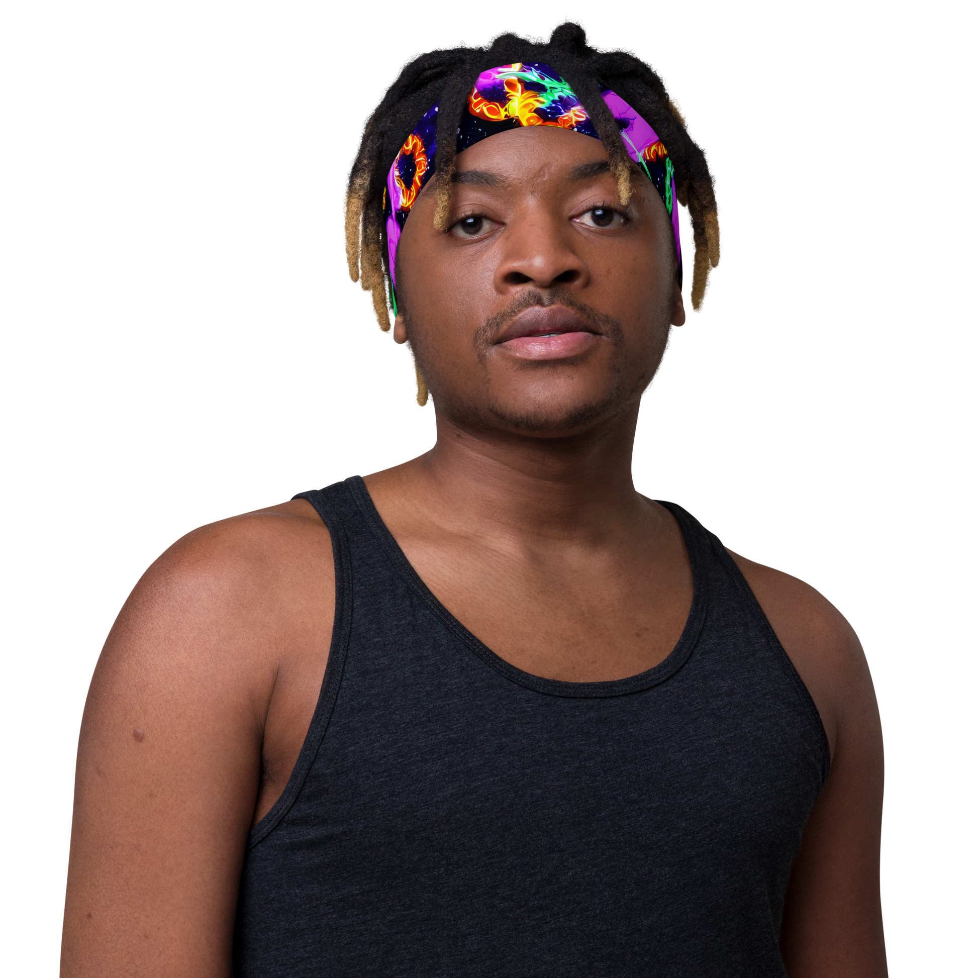 Immerse yourself in the celestial dance of colors with our exclusive headband, where neon greens, purples, and oranges pirouette across a starry deep blue canvas. Ideal for those who seek to express their inner cosmic vibrancy, this accessory is a must-have for creative souls and festival-goers alike. Embrace the mystical wonder of a summer's night sky and carry a fragment of the universe wherever you go. It's not just a headband—it's a statement. Crafted for comfort and style, it's the perfect blend of art and functionality.