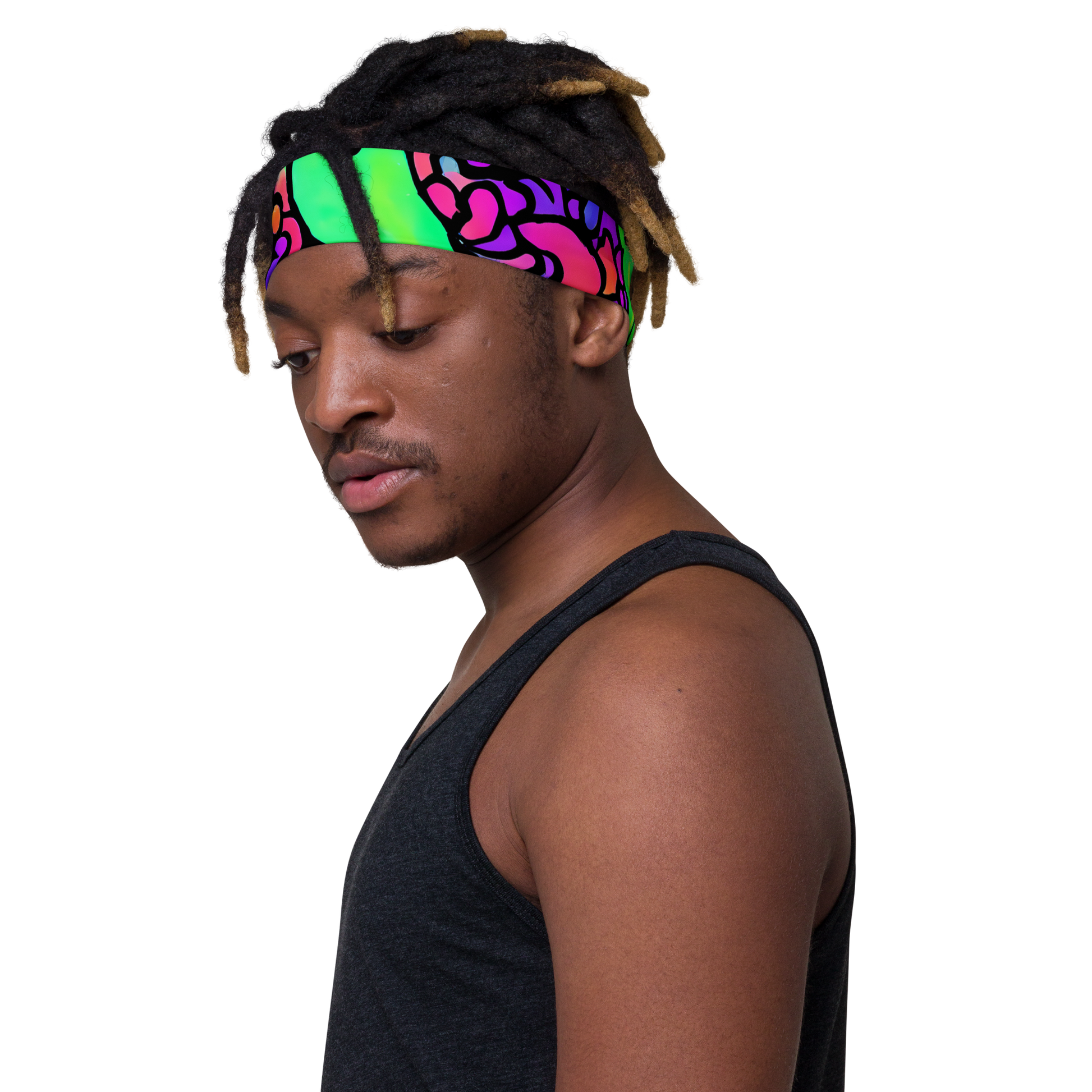 Embrace the electrifying essence of art with this soft, stretchy headband, featuring a design that pulses with the dramatic flair of neon green, pink, and purple abstract shapes. Perfect for those who dare to display their artistic confidence, this headband is your ideal companion for creative gatherings, cultural events, or making a statement during your workout. It's not just an accessory; it's a wearable piece of art that captures your unique spirit and boldness, any day of the week.