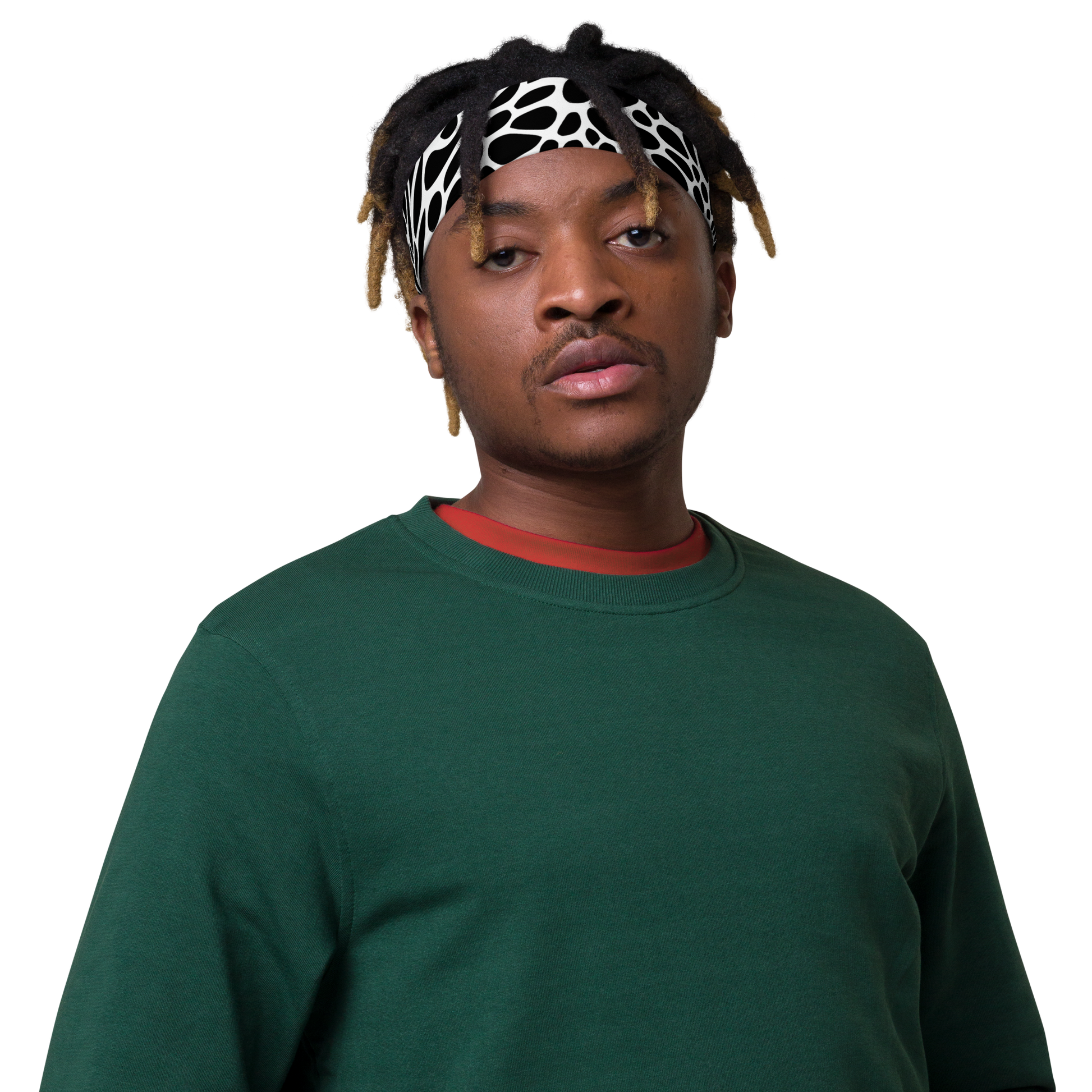 Elevate your style with this soft, stretchy headband featuring a striking black and white pattern of organic, flowing shapes. Reminiscent of abstract animal prints, this design exudes bold sophistication and edgy elegance, making it perfect for evening events, art gallery openings, and fashion-forward gatherings. Ideal for fall and winter, this headband is a must-have for those with a daring and confident personality. Don’t miss out on adding this unique, AI-art generated piece to your collection!