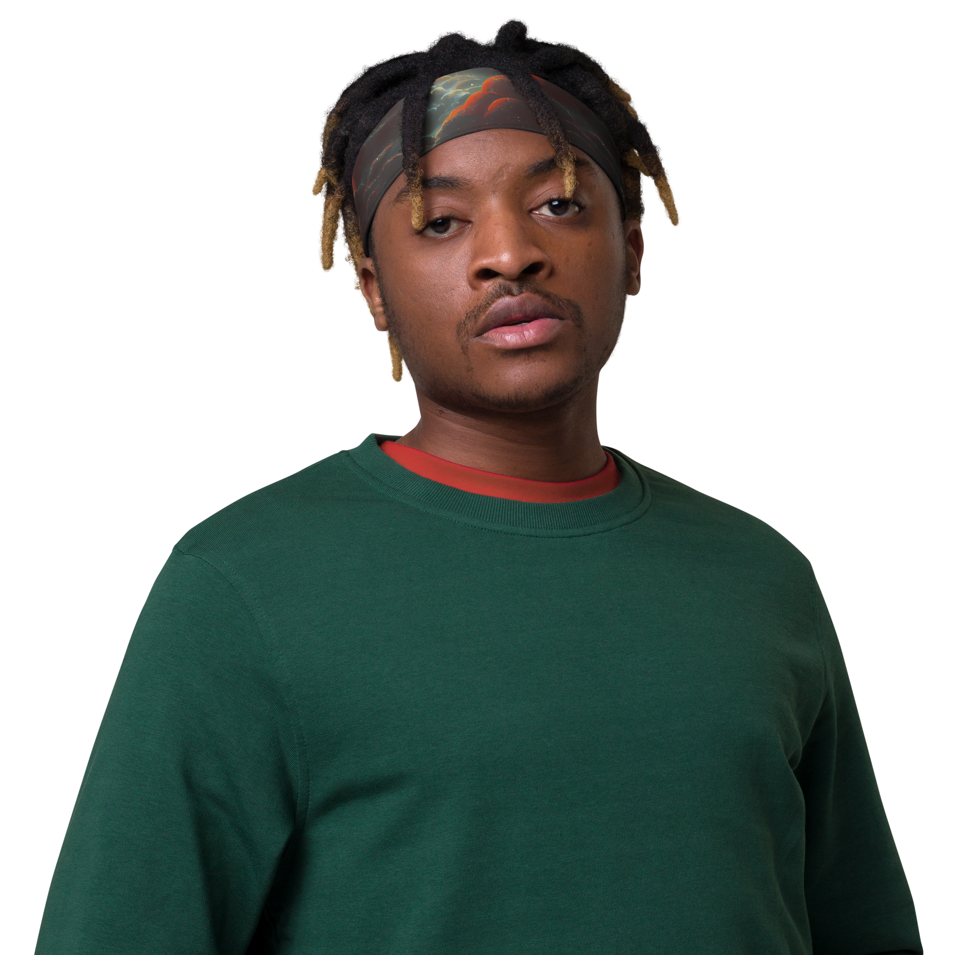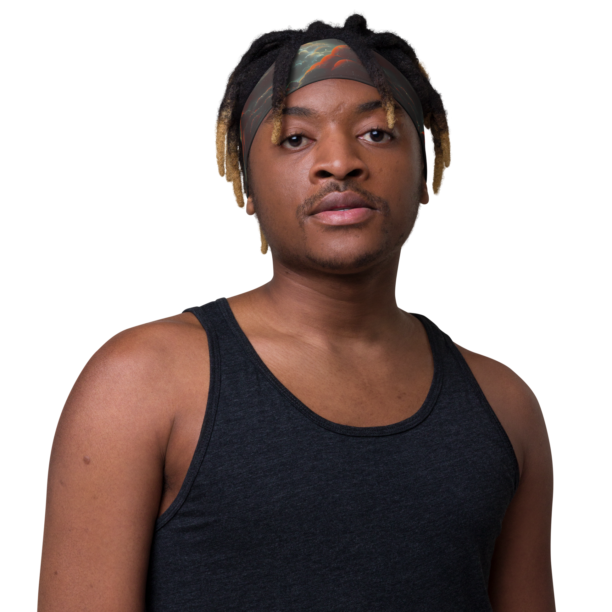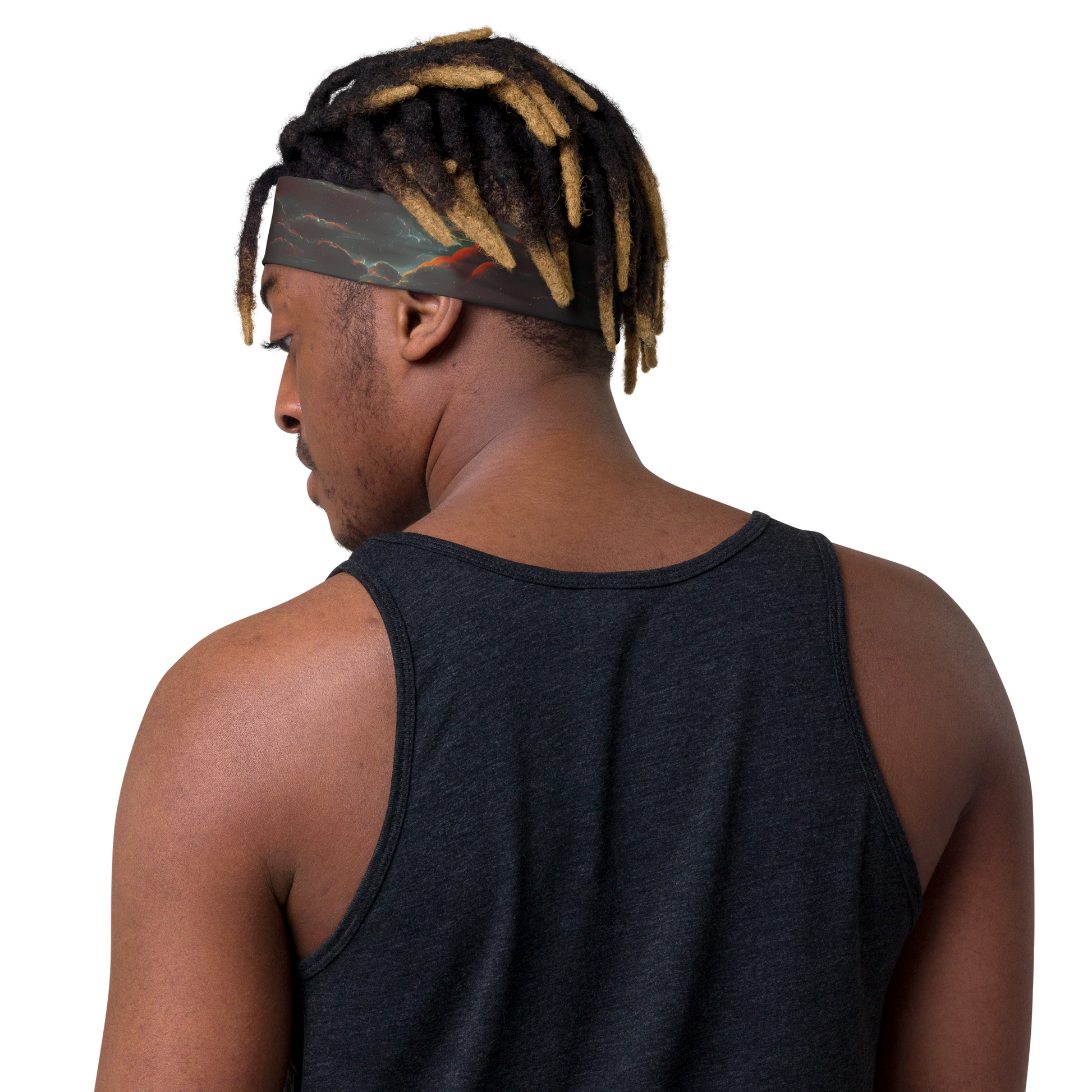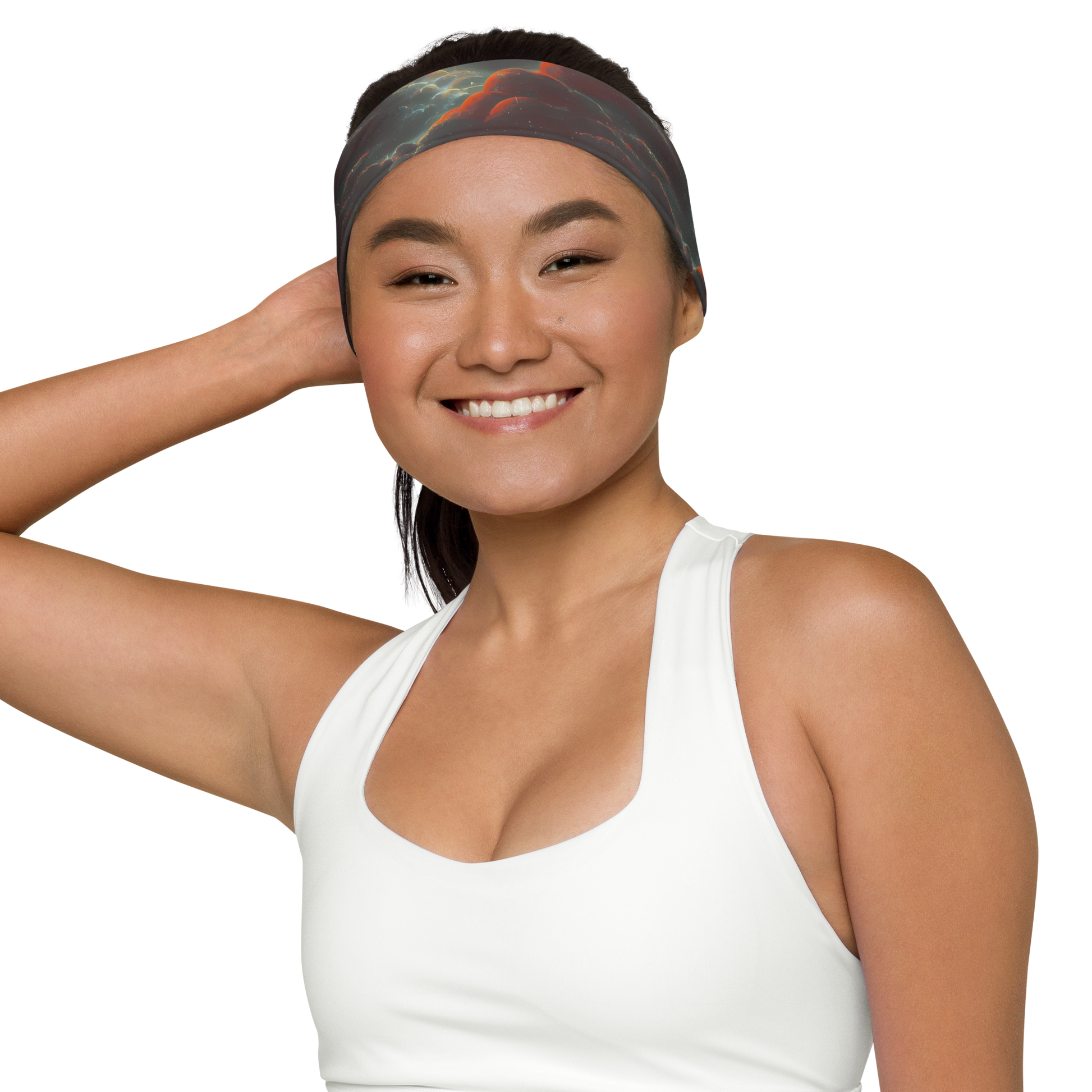 Wrap your head in the cosmic embrace of our soft, stretchy headband, where the fiery orange and cool sapphire hues dance in a celestial spectacle. Designed for those who carry a piece of the night sky with them, this headband is as much a work of art as it is a functional accessory. Whether you're pushing the limits during your workout or adding a touch of the ethereal to your evening attire, this headband is the perfect blend of comfort and avant-garde style. Embrace the fluid textures and dreamy ambiance of this statement piece, and let your bold, whimsical nature shine.