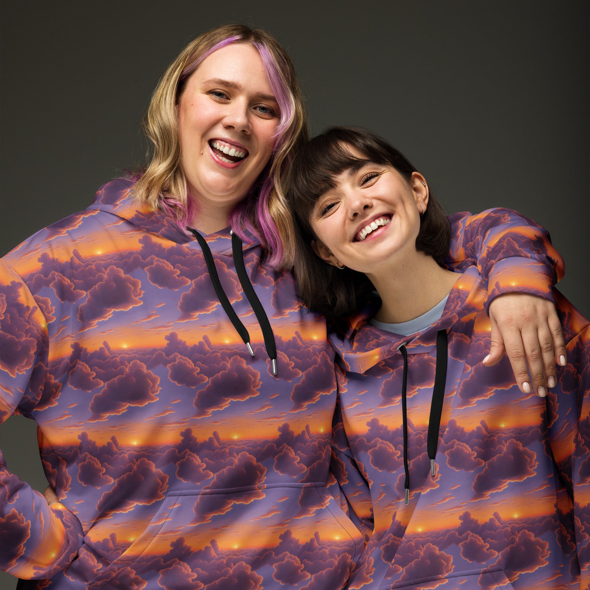 Embrace the whimsical essence of a serene sunset with our "Cotton Candy Dreams" unisex Hoodie! This enchanting design envelops you in soft purples, warm oranges, and gentle pinks, reminiscent of a tranquil sky at dusk. Adorned with fluffy cloud-like shapes, it’s perfect for artistic gatherings, garden parties, or leisurely beach strolls. Wrap yourself in comfort and style, making a unique statement wherever you go!