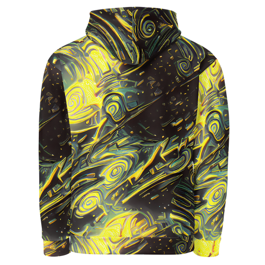Elevate your style with our AI-designed unisex Hoodie featuring the stunning "Eversen Whirl" pattern! This dynamic design showcases swirling golden-yellow and teal lines against a deep, space-like black background, sprinkled with celestial white specks. It's not just a hoodie; it's a wearable piece of art that exudes vibrancy and creativity, perfect for those spirited individuals who appreciate a touch of historical artistry in their modern wardrobe. Wrap yourself in comfort and make a bold statement at any casual outing or creative event this fall!