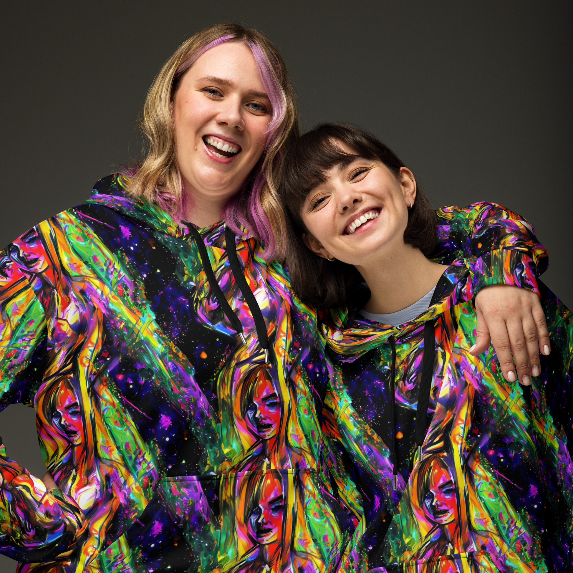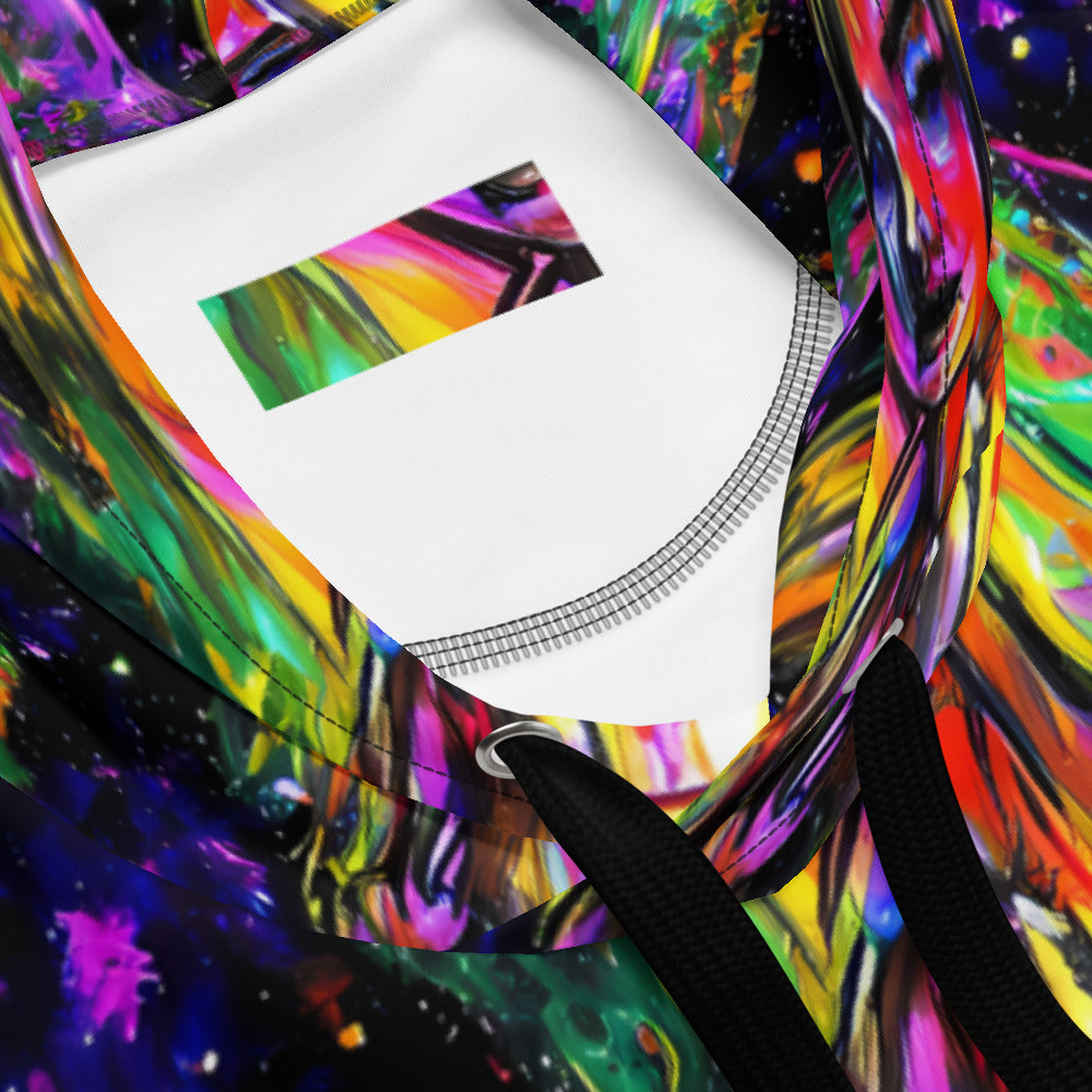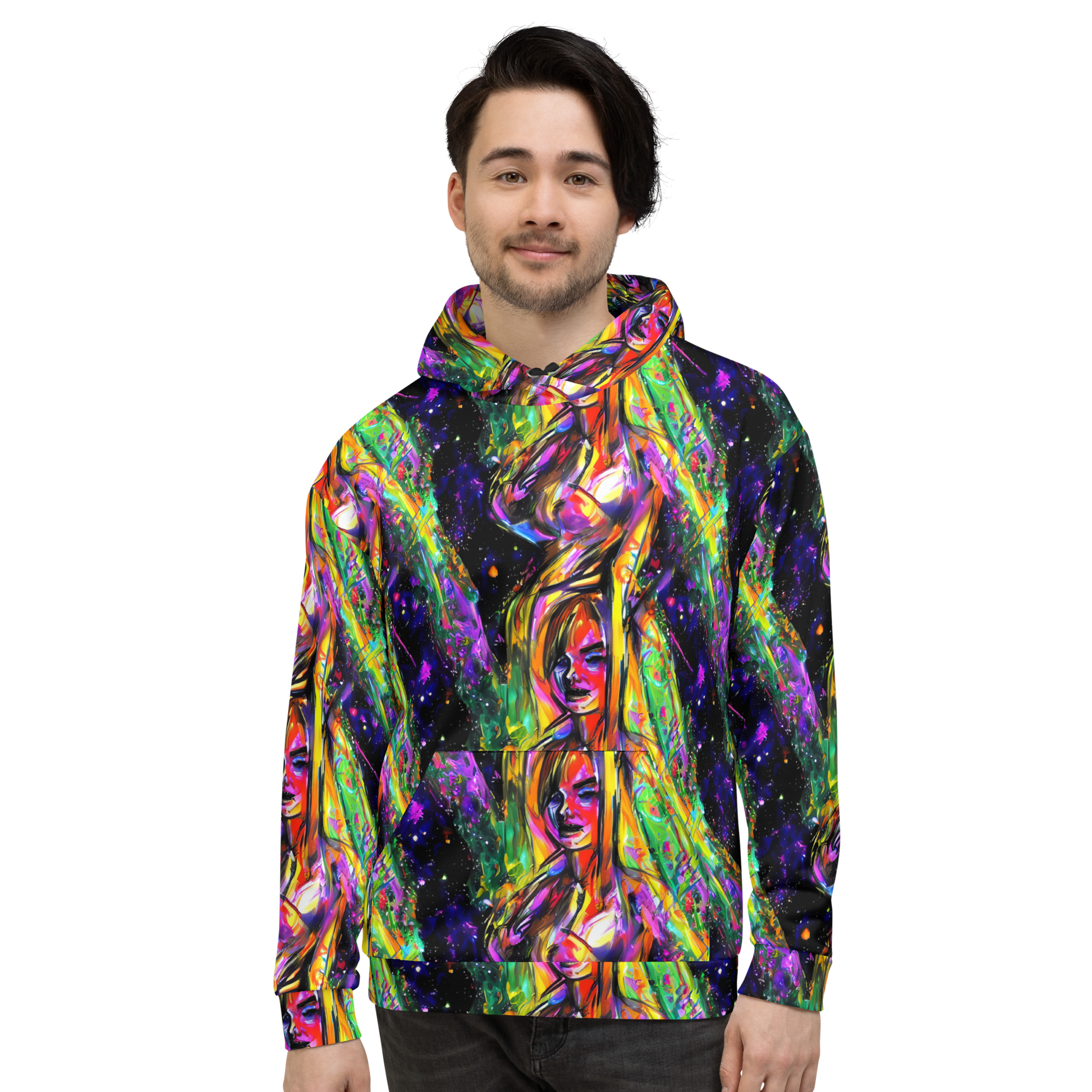 Wrap yourself in the cosmic vibrancy of our unisex Hoodie, featuring a stunning pattern that bursts with deep blues, vibrant purples, and fiery oranges. Inspired by the passionate essence of flamenco dance and celestial wonders, this design is perfect for making a bold statement at music festivals or artistic events. Experience the perfect blend of comfort and unique style with this one-of-a-kind piece!