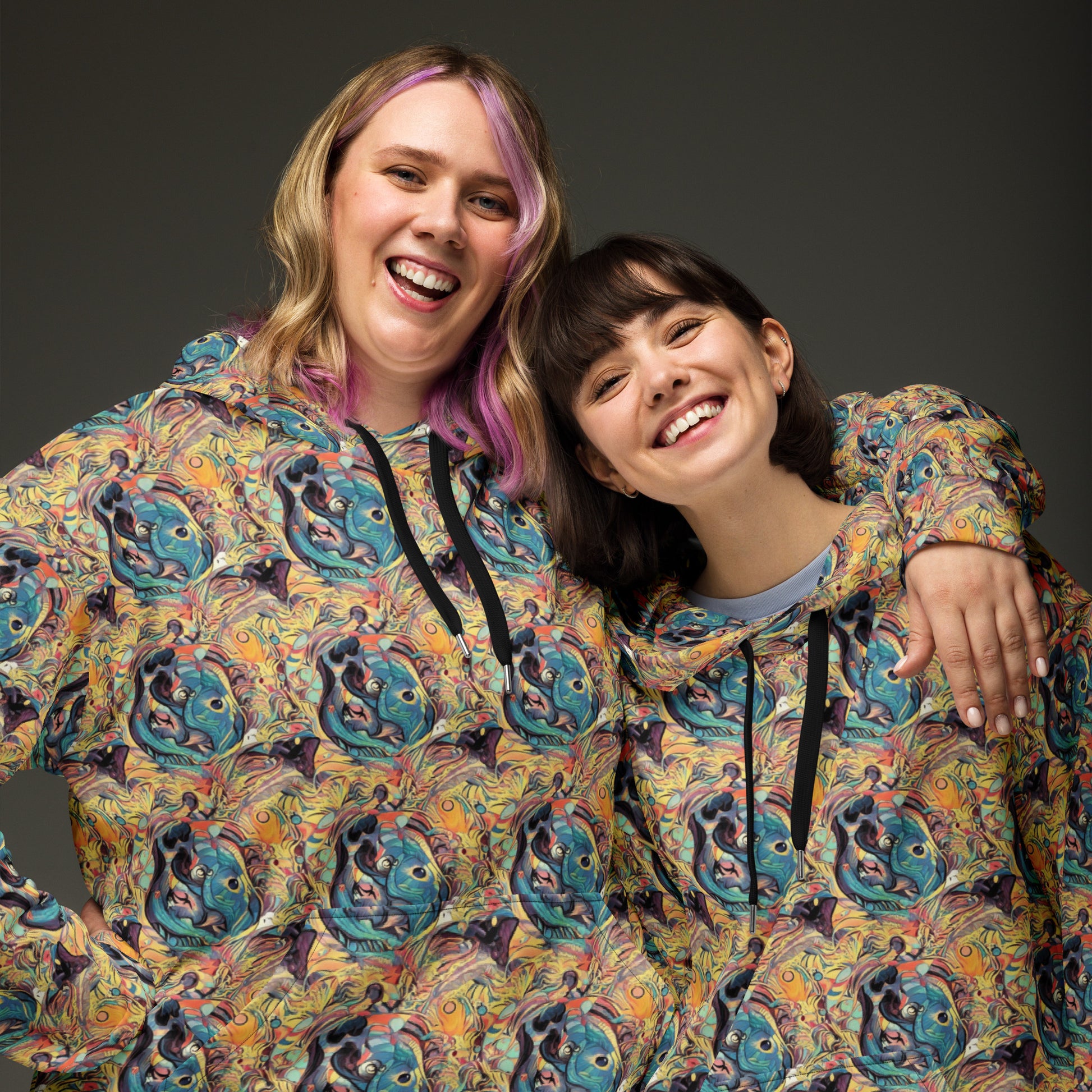Step into a world of vibrant imagination with our "Harmonic Dream" Hoodie! This unisex piece wraps you in a mesmerizing tapestry of swirling blues, fiery oranges, and soft yellows, reminiscent of a cosmic ballet infused with whimsical feline grace. Perfect for avant-garde gallery openings or eclectic summer festivals, this hoodie not only keeps you cozy but also makes a bold statement that reflects your artistic spirit. Elevate your wardrobe with a unique design that embodies playful sophistication!