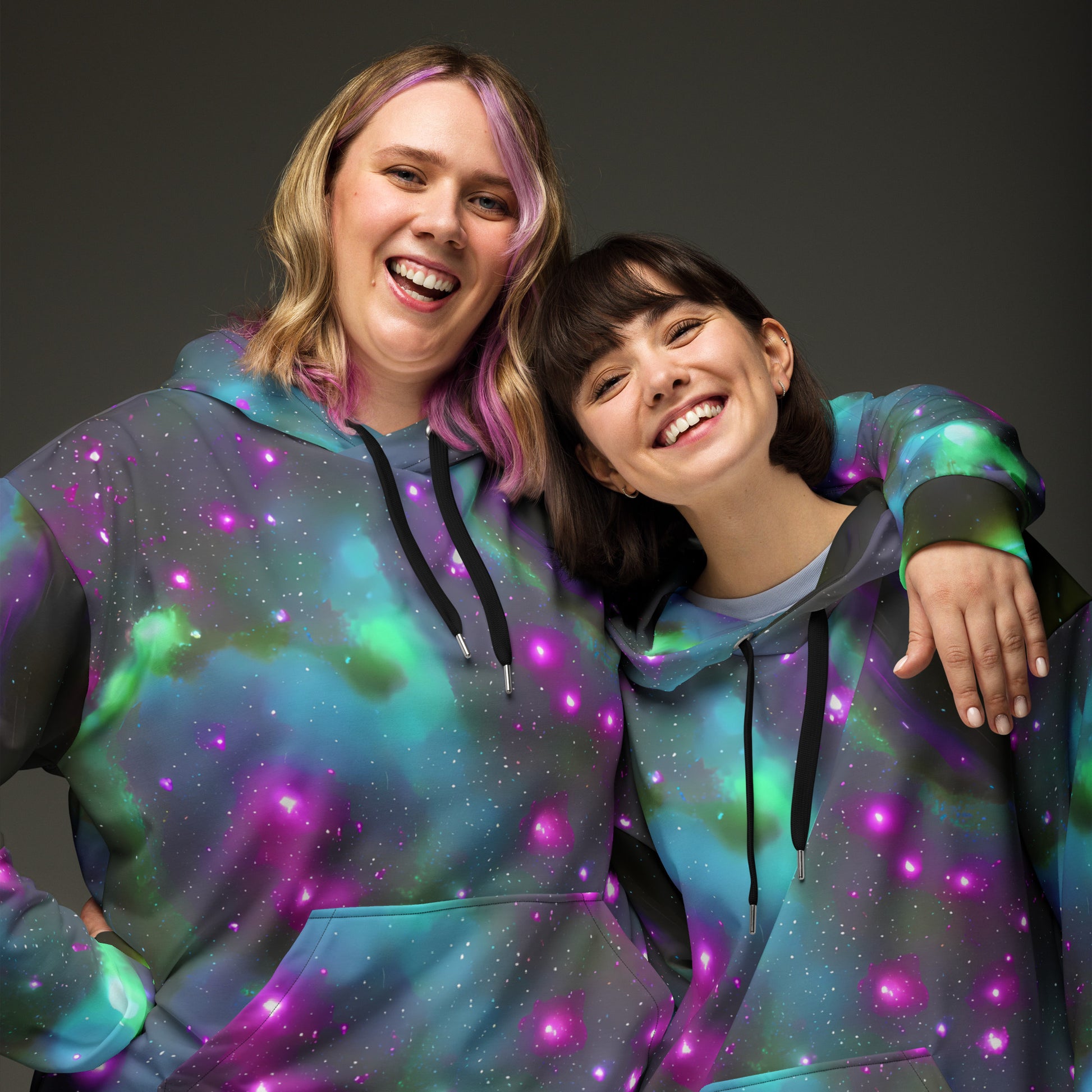 Elevate your style with our "Interstellar Haze" unisex Hoodie, where cosmic elegance meets unparalleled comfort! Adorned with a mesmerizing blend of deep purples, ethereal blues, and vibrant greens, this hoodie captures the mystique of a cosmic nebula. The swirling patterns and speckled textures not only make a bold statement but also evoke a sense of wonder, perfect for evening events or art gallery openings. Wrap yourself in plush warmth while showcasing your adventurous spirit!