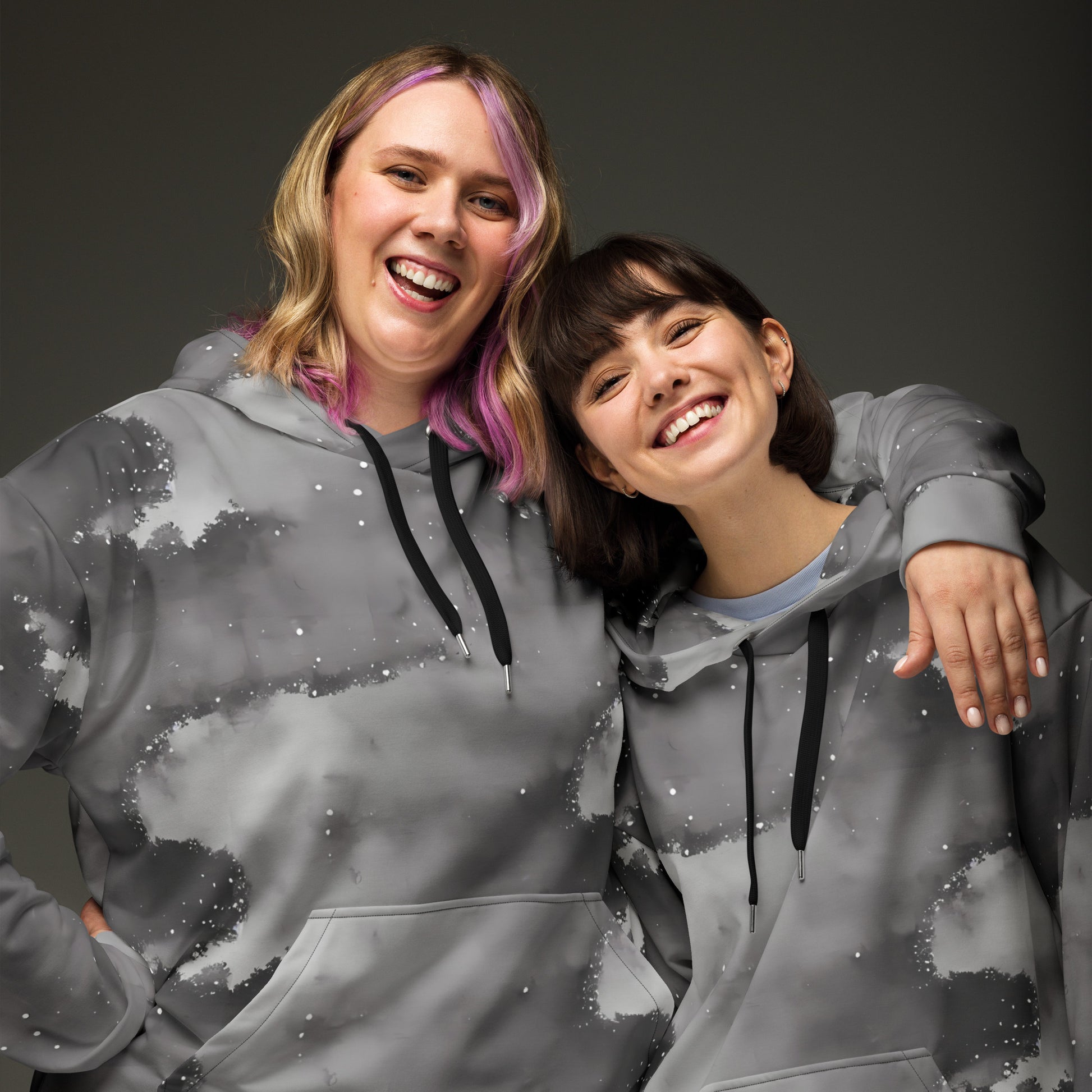 Elevate your style with our exclusive unisex Hoodie featuring the mesmerizing "Monochrome Dreams" pattern. This ethereal design transports you through a misty cosmic landscape, where soft greys and deep blacks mingle with delicate white specks that twinkle like distant stars. Perfect for the introspective and imaginative soul, this hoodie not only wraps you in cozy warmth but also makes a striking statement in any urban setting or avant-garde evening event.