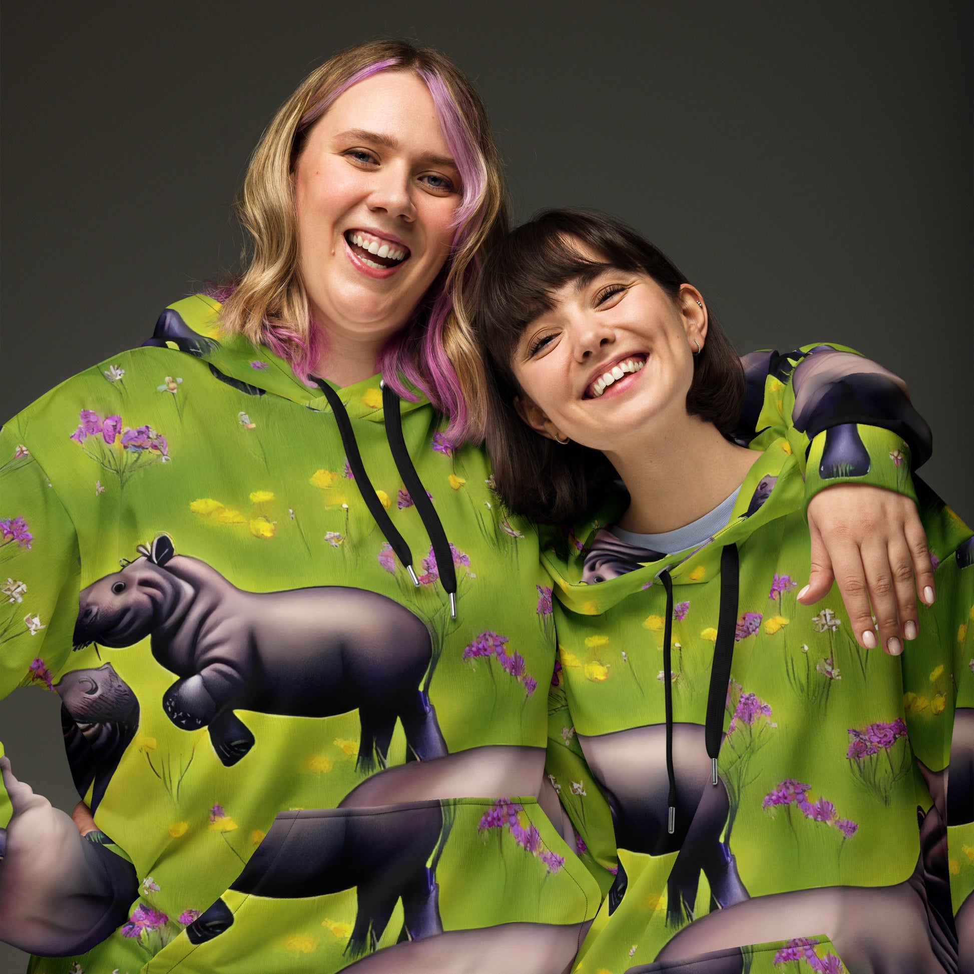 Embrace the spirit of adventure with our "Verdant Safari" unisex Hoodie, where vibrant greens and earthy browns come to life with playful baby hippos frolicking among a chorus of wildflowers. This unique design radiates joy and serenity, making it the perfect companion for spring and summer outings, garden parties, or casual get-togethers. Wrap yourself in this cozy masterpiece and let your wardrobe reflect your curious, joyful spirit!