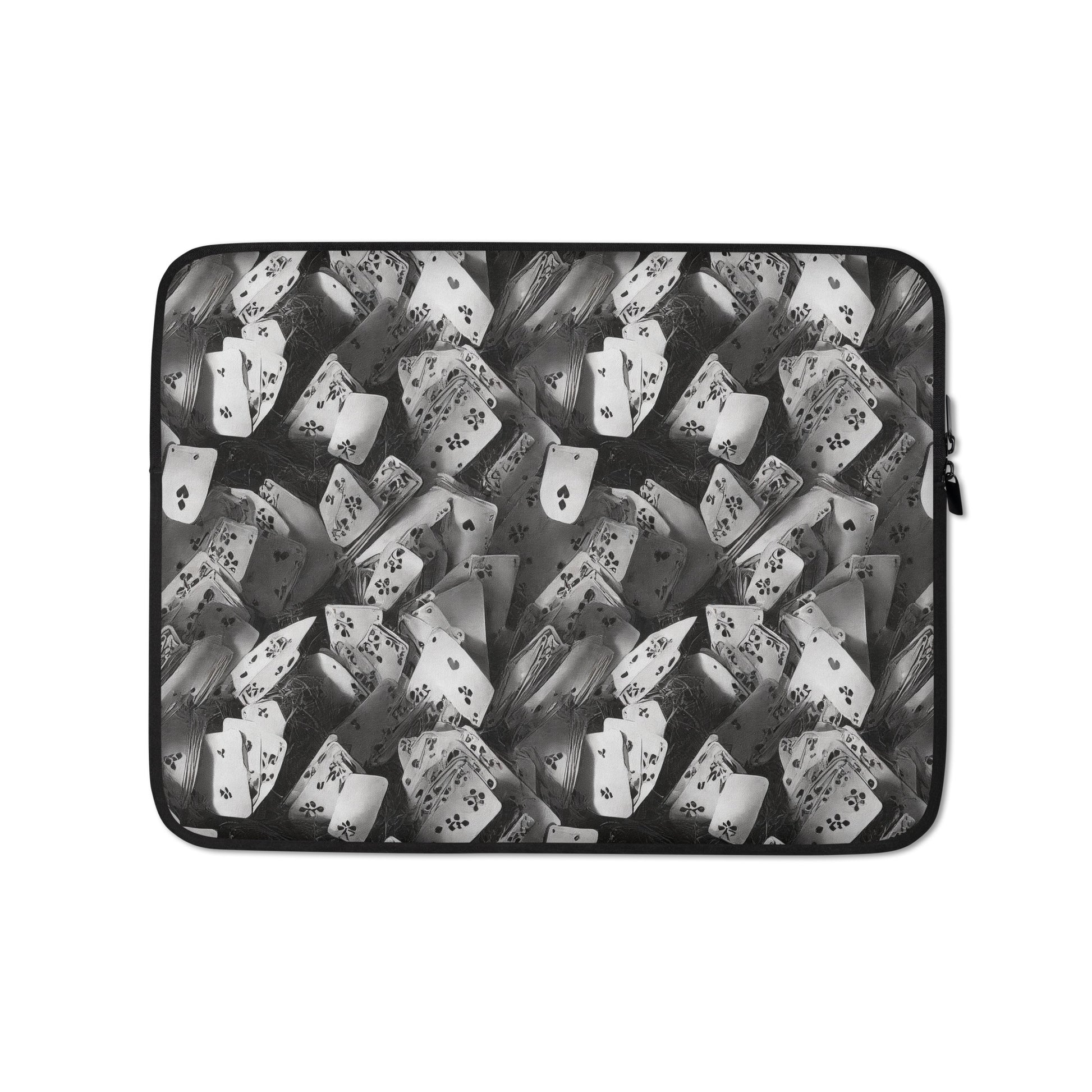 Elevate your style and protect your technology with our "Fortune’s Folly" Laptop Sleeve, a stunning fusion of whimsical chaos and surreal elegance. This captivating monochrome design features scattered playing cards that dance across a dreamlike texture, embodying a playful yet mysterious spirit. Perfect for the adventurous soul who thrives on life's unexpected twists, this sleeve ensures your laptop stands out at autumnal gatherings or avant-garde events, all while providing top-notch protection.