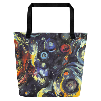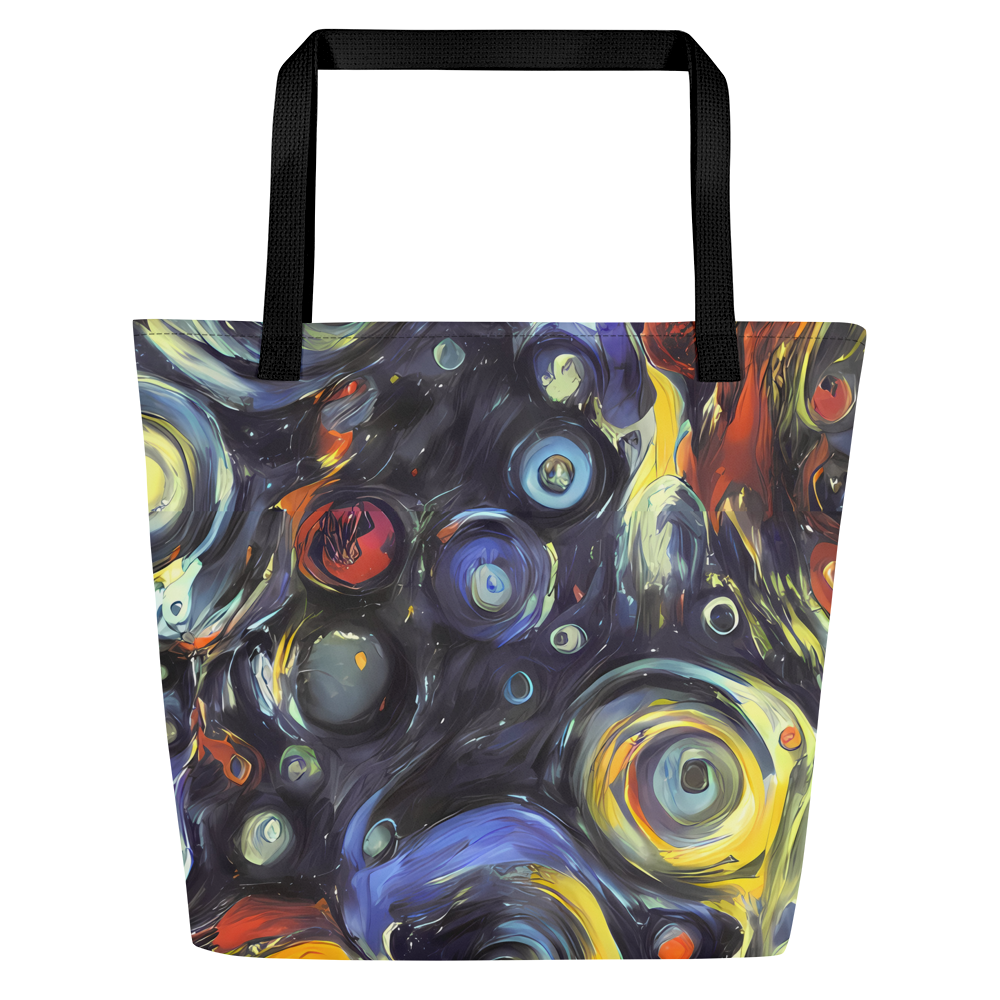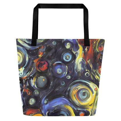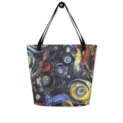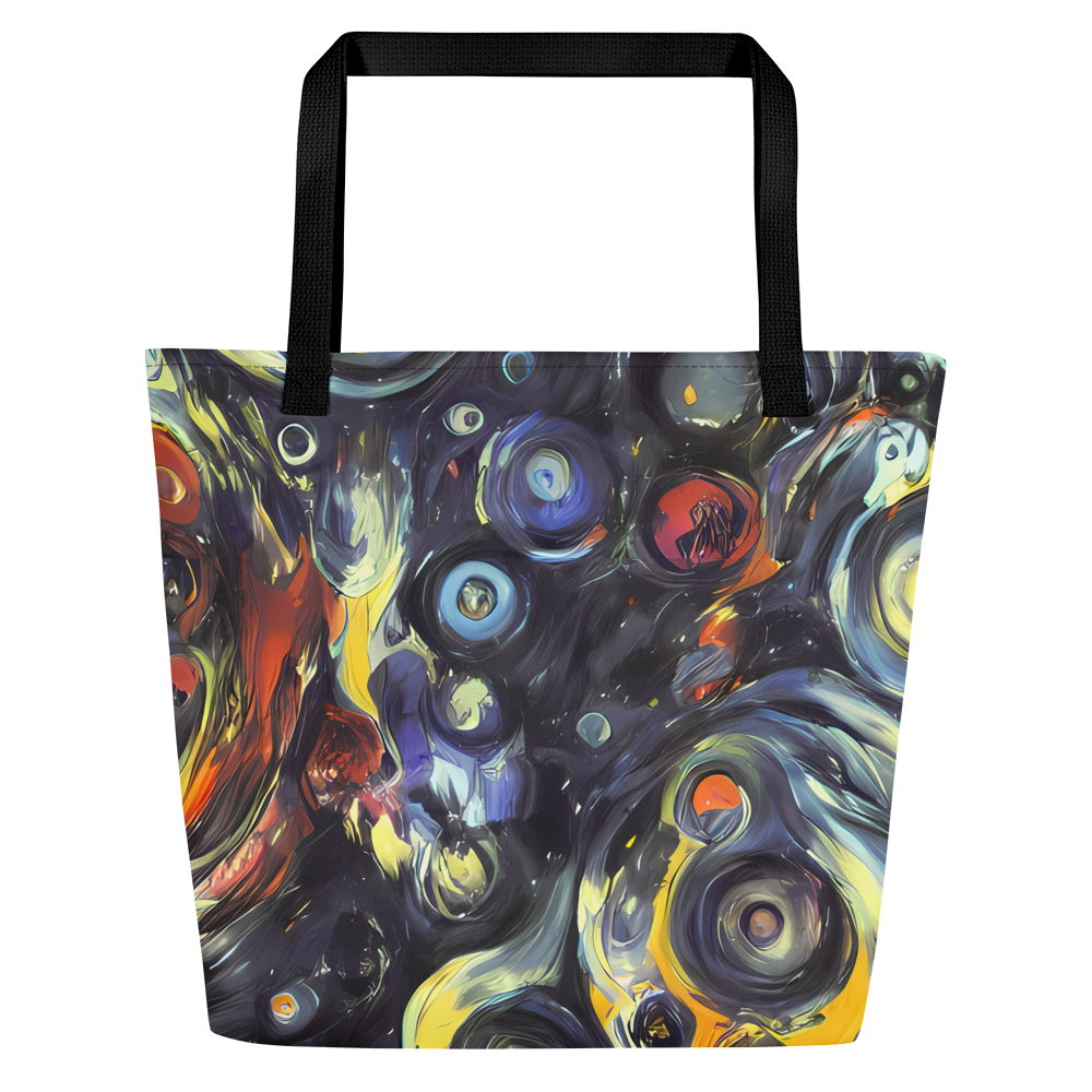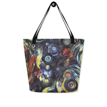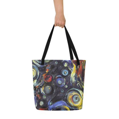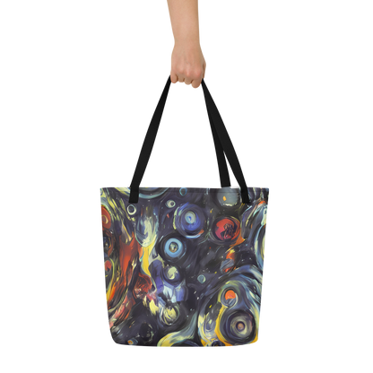 Ignite your daily ensemble with the exuberance of our Large Tote Bag featuring the exclusive "Corinthian Swirl" pattern. This AI-crafted masterpiece merges the spontaneous energy of abstract art with practical design, creating a tote that is not just a bag but a bold statement piece. Its swirls of blues, yellows, and fiery oranges are reminiscent of Lovis Corinth's expressive brushwork, designed to captivate attention and complement your unique style, whether you're at an artistic event or a casual spring or autumn gathering.