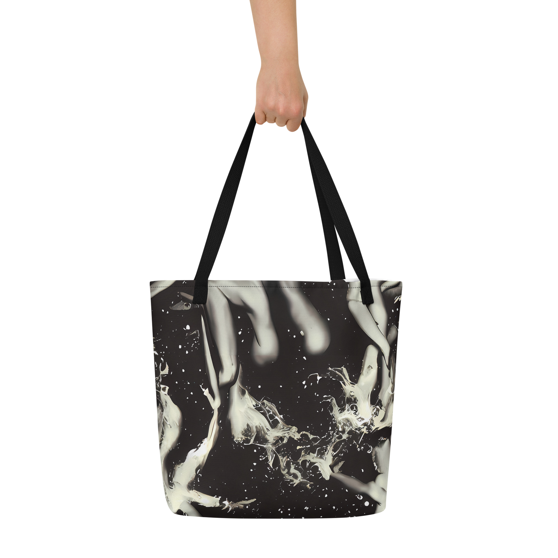 Embrace the enigma of shadow and light with our Large Tote Bag, featuring an exquisite pattern that captures a dance of contrasts. This accessory is not just a bag, but a piece of wearable art, perfect for those who carry a love for the dramatic and an appreciation for the arts within their soul. With a design that whispers tales of timeless elegance and bold sophistication, this tote is destined to turn heads at avant-garde events and high-fashion gatherings. Make a statement of mysterious allure as you traverse the cityscape or attend an introspective autumnal gathering.