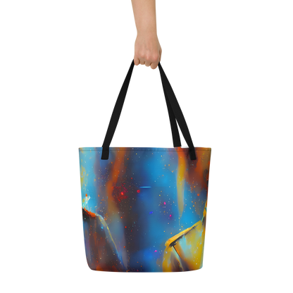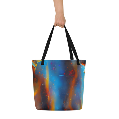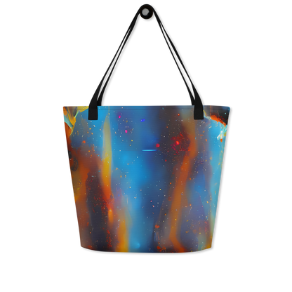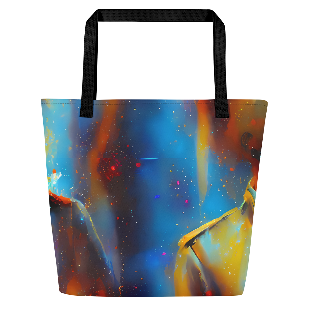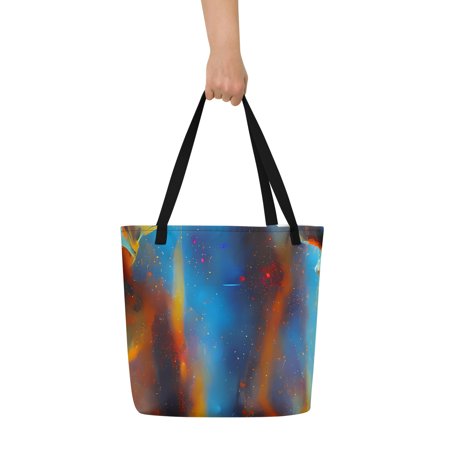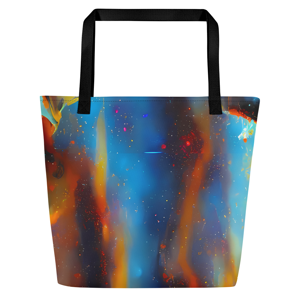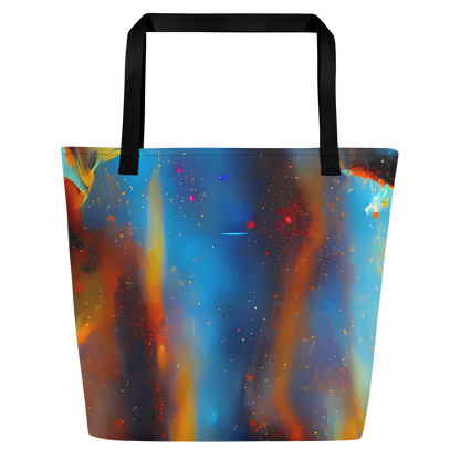 Ignite your daily adventures with the mesmerizing "Pliique Spectrum" Large Tote Bag – a fusion of art and utility that's as dynamic as your lifestyle. Wrapped in an electrifying pattern that dances with fiery oranges, deep blues, and cosmic white speckles, this tote is a tribute to the energetic spirit of a nebula and the expressive strokes of Andre Kohn. It's not just a bag; it's a statement piece for the bold and artistic, ready to turn heads at creative events or during casual spring and summer outings.