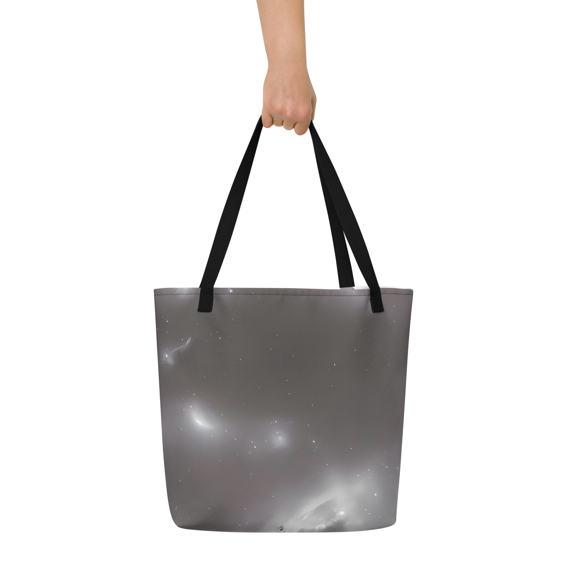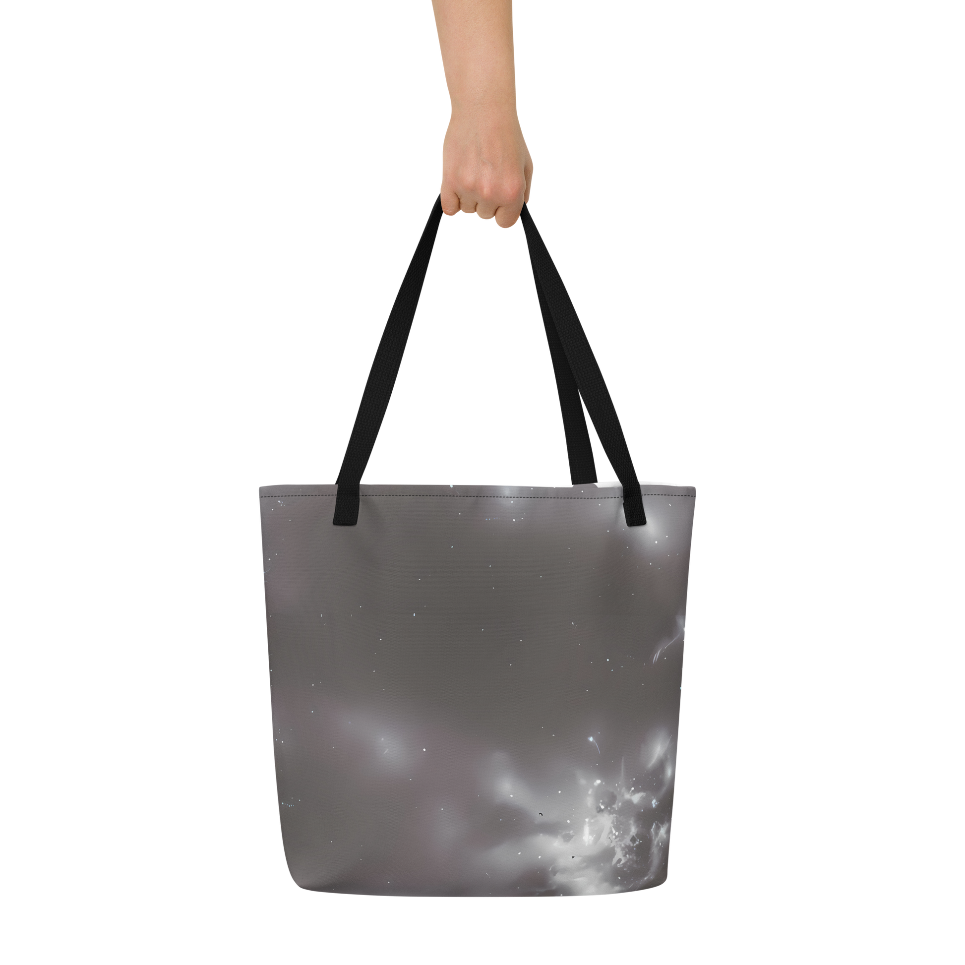Embrace the allure of the cosmos with our Large Tote Bag, featuring an exquisite design that captures the essence of a celestial masterpiece. The swirling shades of silver and gray bring the enigmatic charm of a nebulous star field to your arm, accented with a sprinkle of star-like highlights for a sophisticated and introspective vibe. This tote is not just an accessory; it's a statement of your unique style, mirroring the serene depth of the universe itself. Perfect for those who find beauty in the stars and carry a piece of the night sky with them.