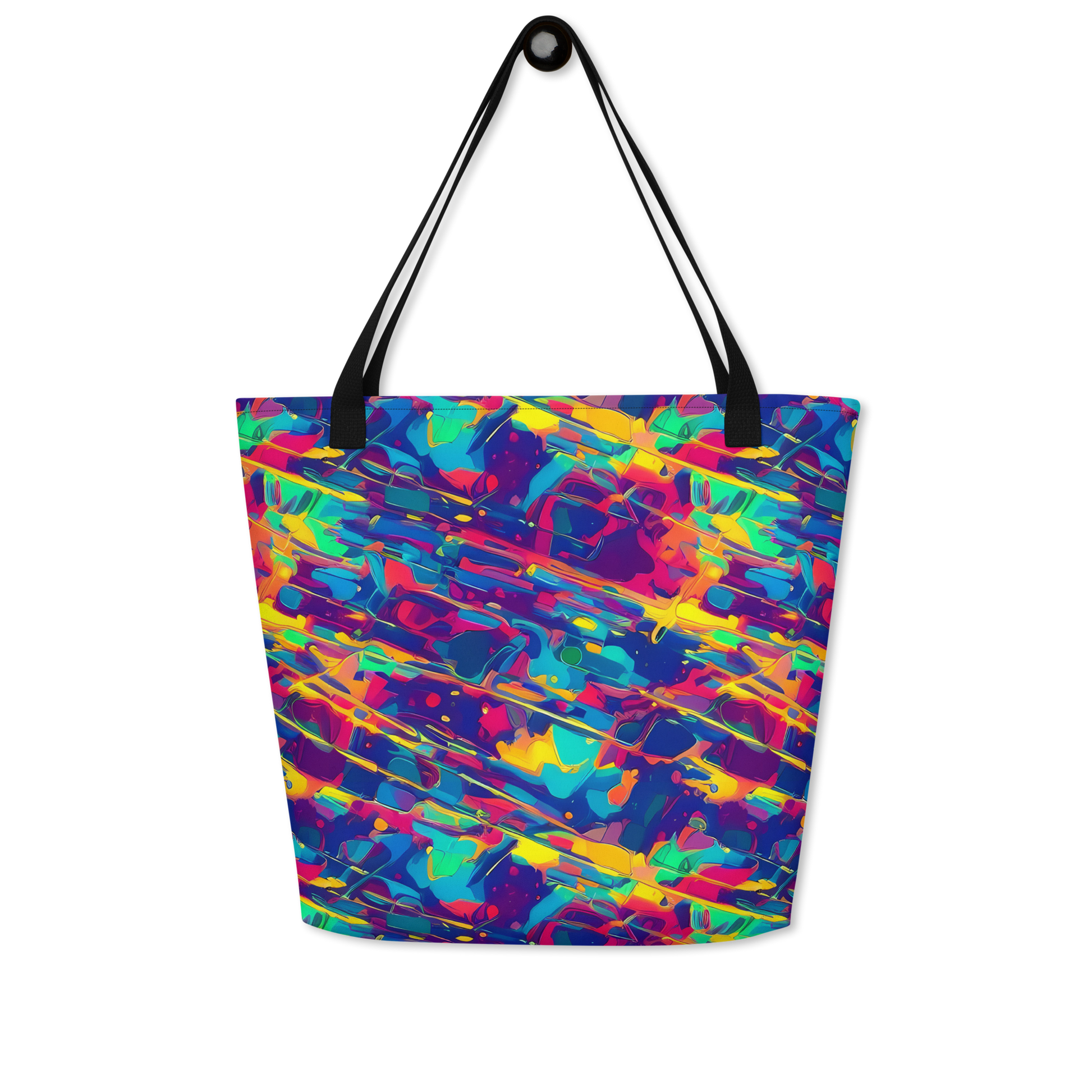 Elevate your style with our Large Tote Bag, showcasing an electrifying explosion of color and movement. This tote features dynamic streaks and fluid shapes in vibrant hues of electric blue, neon pink, fiery red, and sunny yellow, evoking a sense of cosmic wonder and energetic vibrancy. Perfect for music festivals, art exhibitions, or summer parties, this bag is ideal for those with a bold and adventurous personality. Make a statement and turn heads wherever you go!