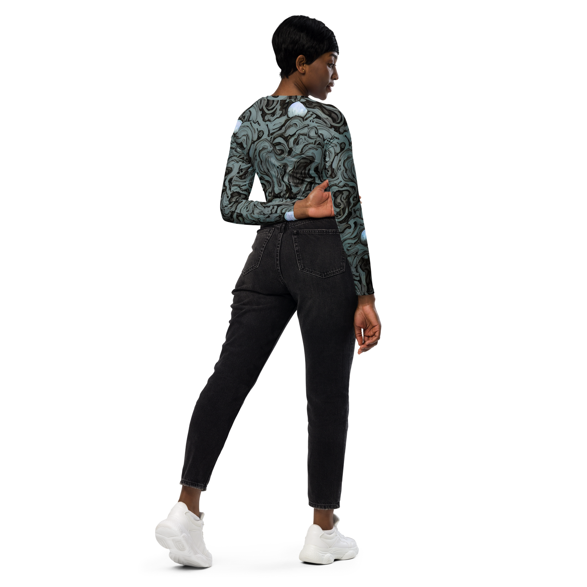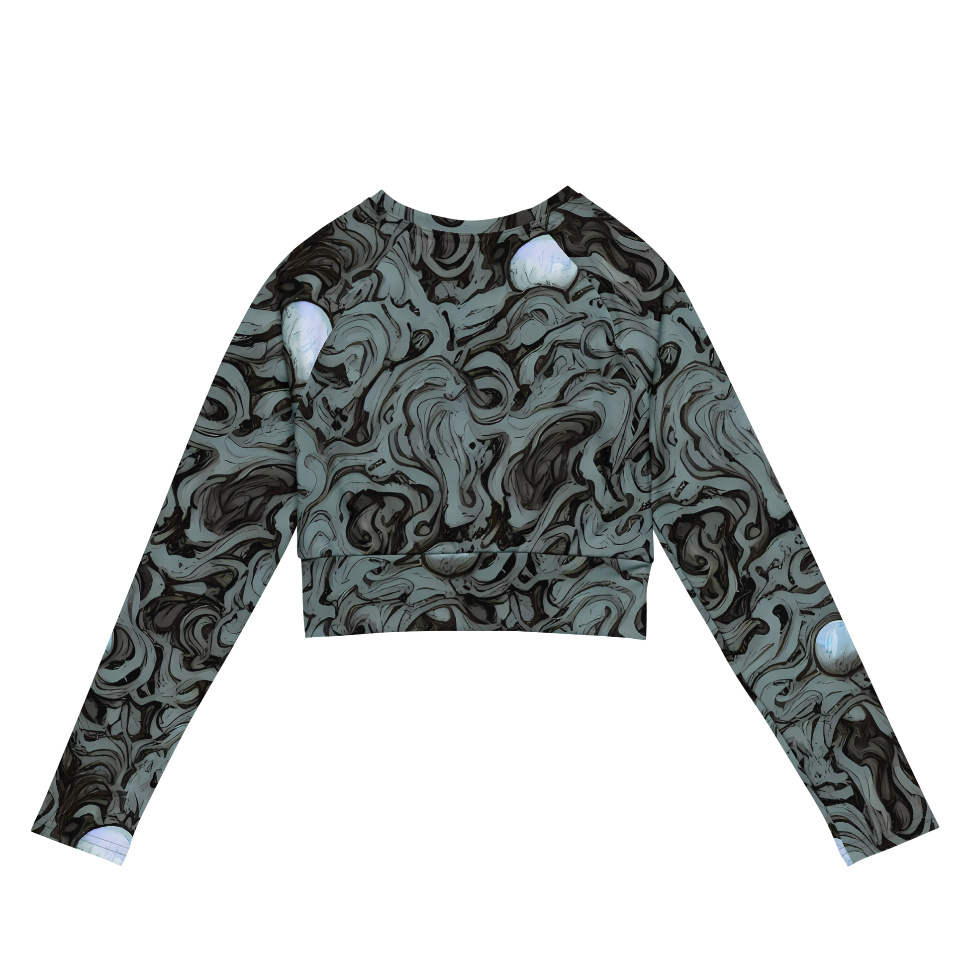 Step into the spotlight with our stunning long-sleeve crop top featuring the captivating "Caruso Swirl" pattern! This unique design showcases dark, moody swirls in deep brown and black, accented with hints of white, creating an avant-garde statement piece that embodies artistic flair and bold personality. Crafted from eco-friendly materials, this top not only elevates your style but also champions sustainability. Perfect for any occasion, from gallery openings to outdoor adventures, this crop top is your new go-to for making an unforgettable impression.