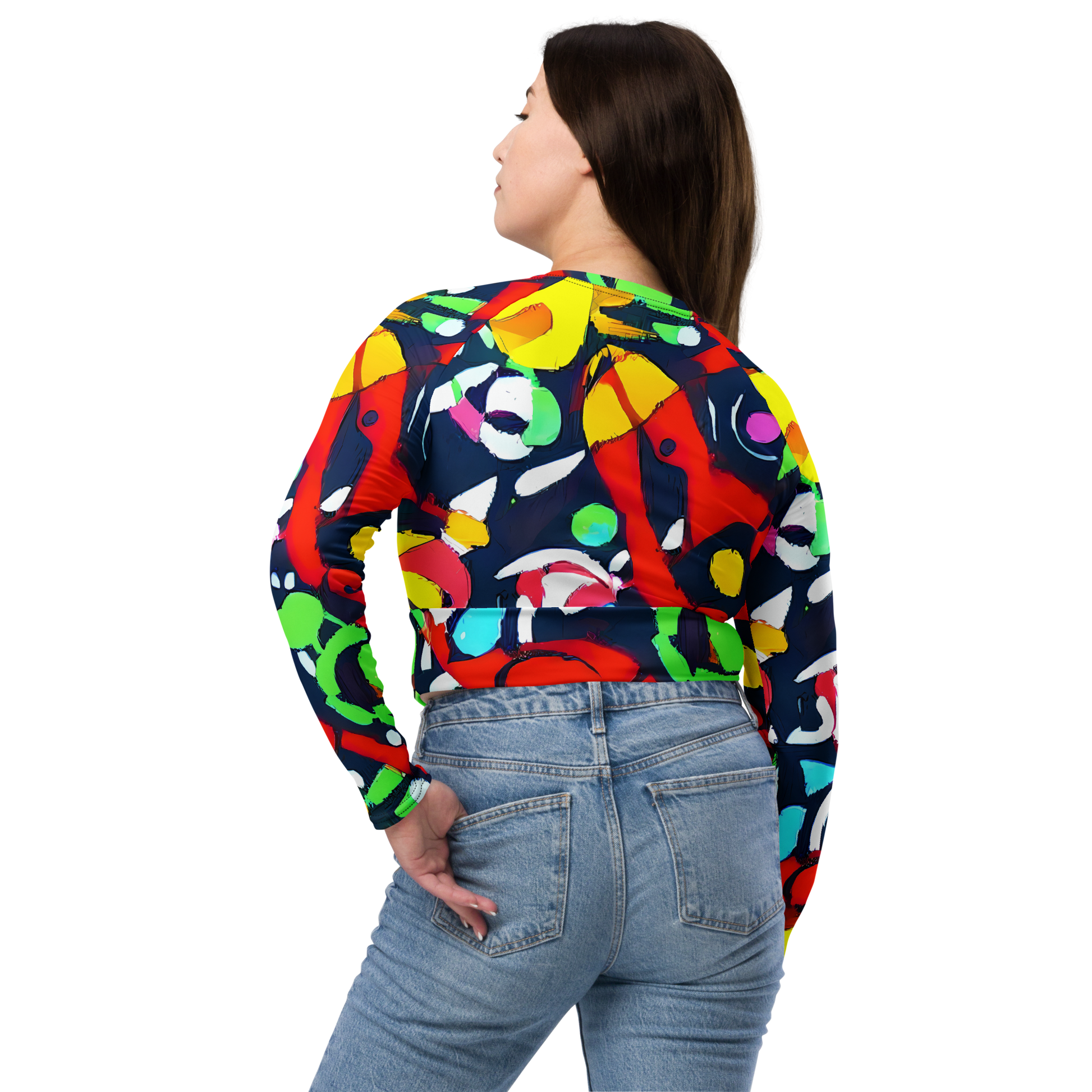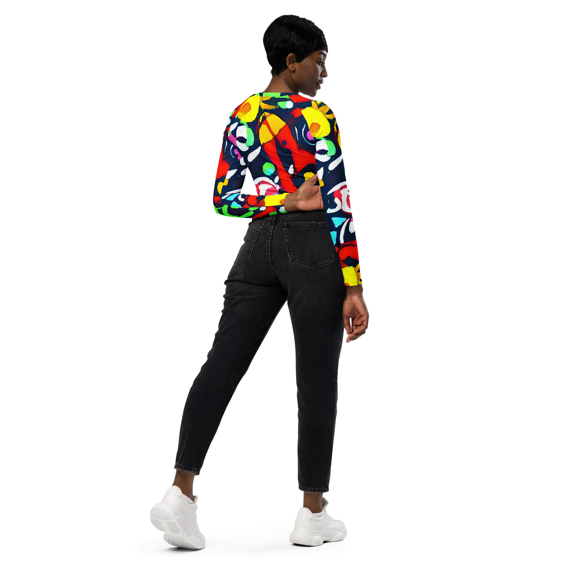 Unleash your inner artist with our eco-chic, long-sleeve crop top featuring a burst of vibrant hues and playful abstract shapes. This lively and emotive design, inspired by dreamlike artistry, is perfect for artistic gatherings, summer festivals, or casual outings. Crafted with recycled materials and boasting UPF 50+ protection, this top combines sustainability with style, making it an essential addition to your spring and summer wardrobe.