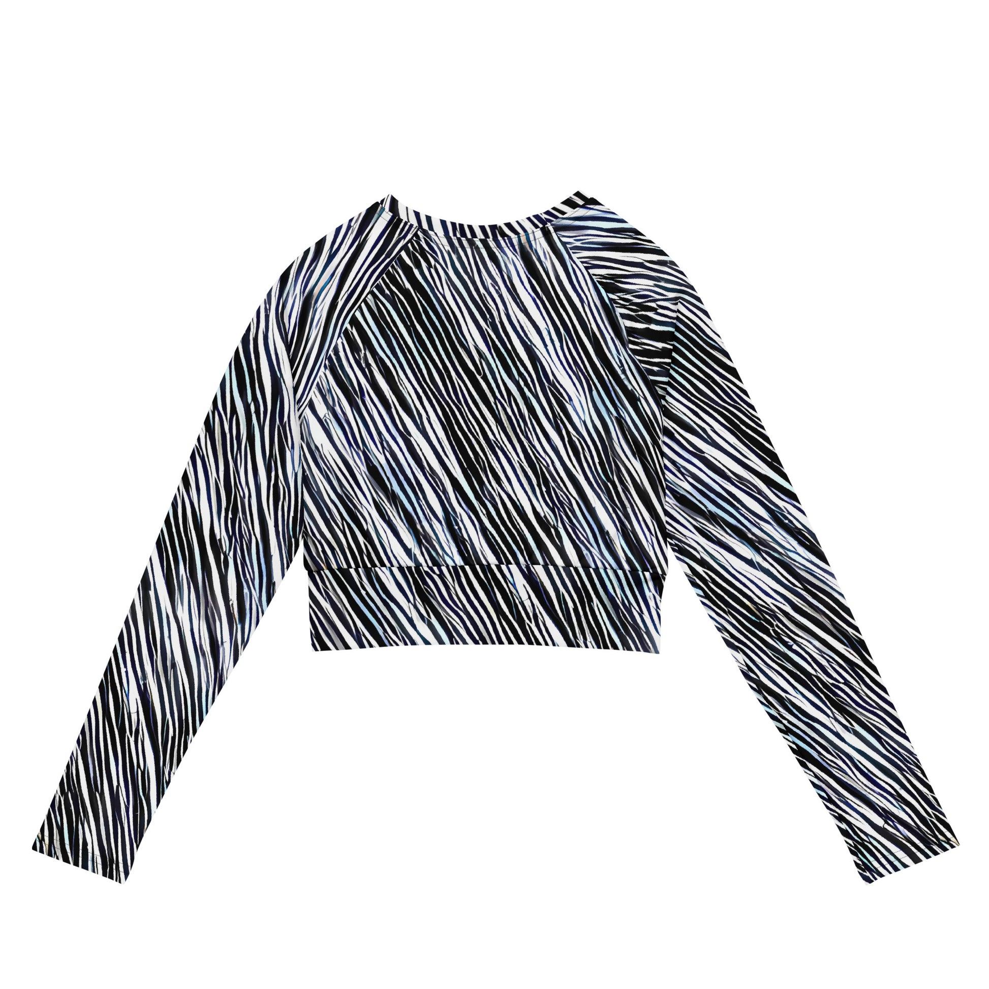 Introducing our stunning Long Sleeve Crop Top in the exclusive "Dupain Waves" pattern, where art meets fashion! Inspired by the fluidity of ocean waves and the iconic style of Max Dupain, this top showcases a striking interplay of black and white lines with a hint of blue, making it the perfect choice for art lovers and trendsetters alike. Crafted from eco-friendly materials, this crop top not only elevates your wardrobe but also champions sustainability. Whether you're attending an art gallery opening or enjoying a chic summer gathering, this piece is designed to make a statement and enhance your unique style.