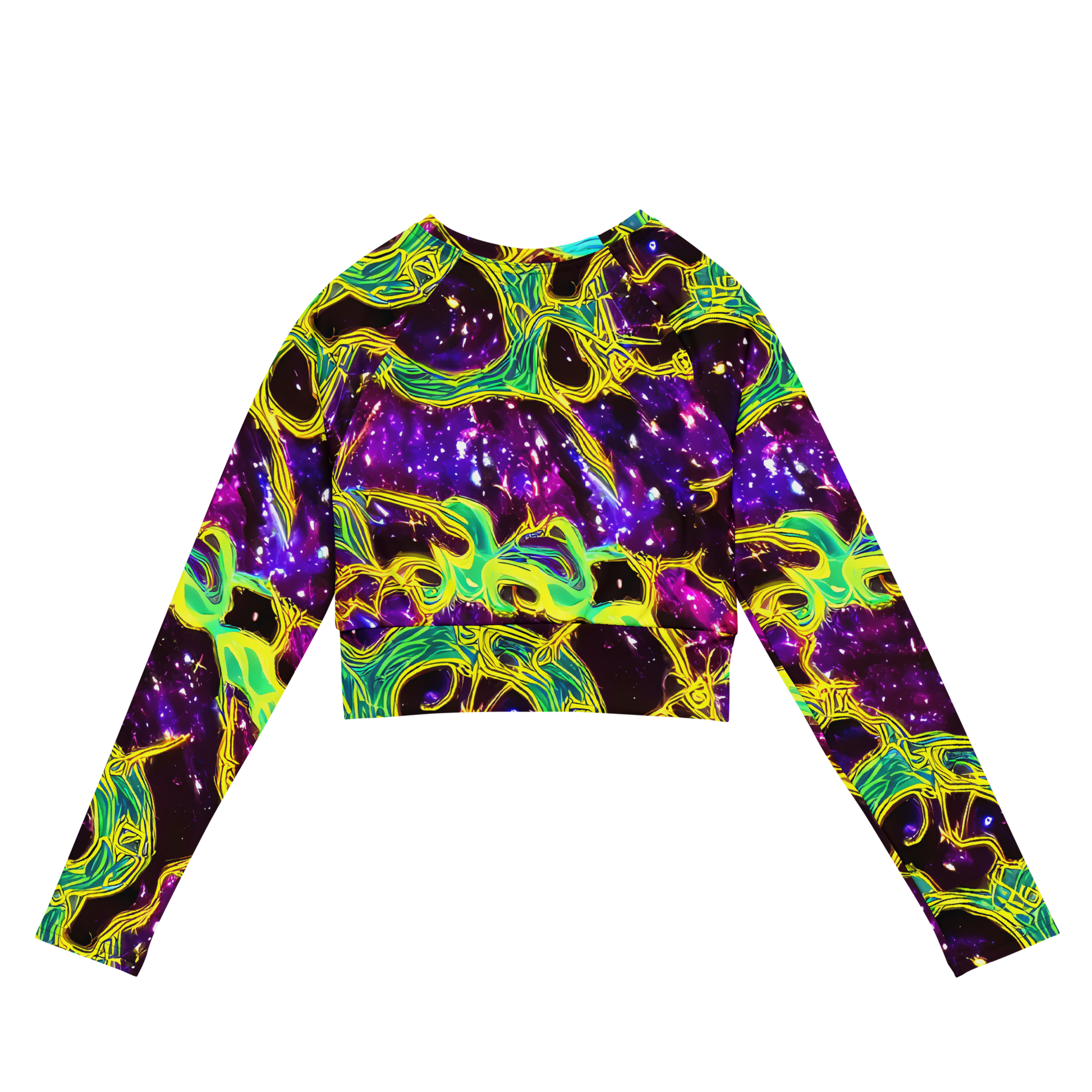 Step into the cosmos with our stunning Long Sleeve Crop Top, featuring the mesmerizing "Galactic Web" pattern! This vibrant tapestry of cosmic purples and deep blues, interwoven with electric neon lines and dynamic circular motifs, will elevate your wardrobe to new heights of artistic flair. Perfect for those with a confident, expressive personality, this top is crafted from eco-friendly materials, ensuring you shine bright while being kind to the planet. Whether you're at an outdoor festival or a casual brunch, this crop top will make you the center of attention!