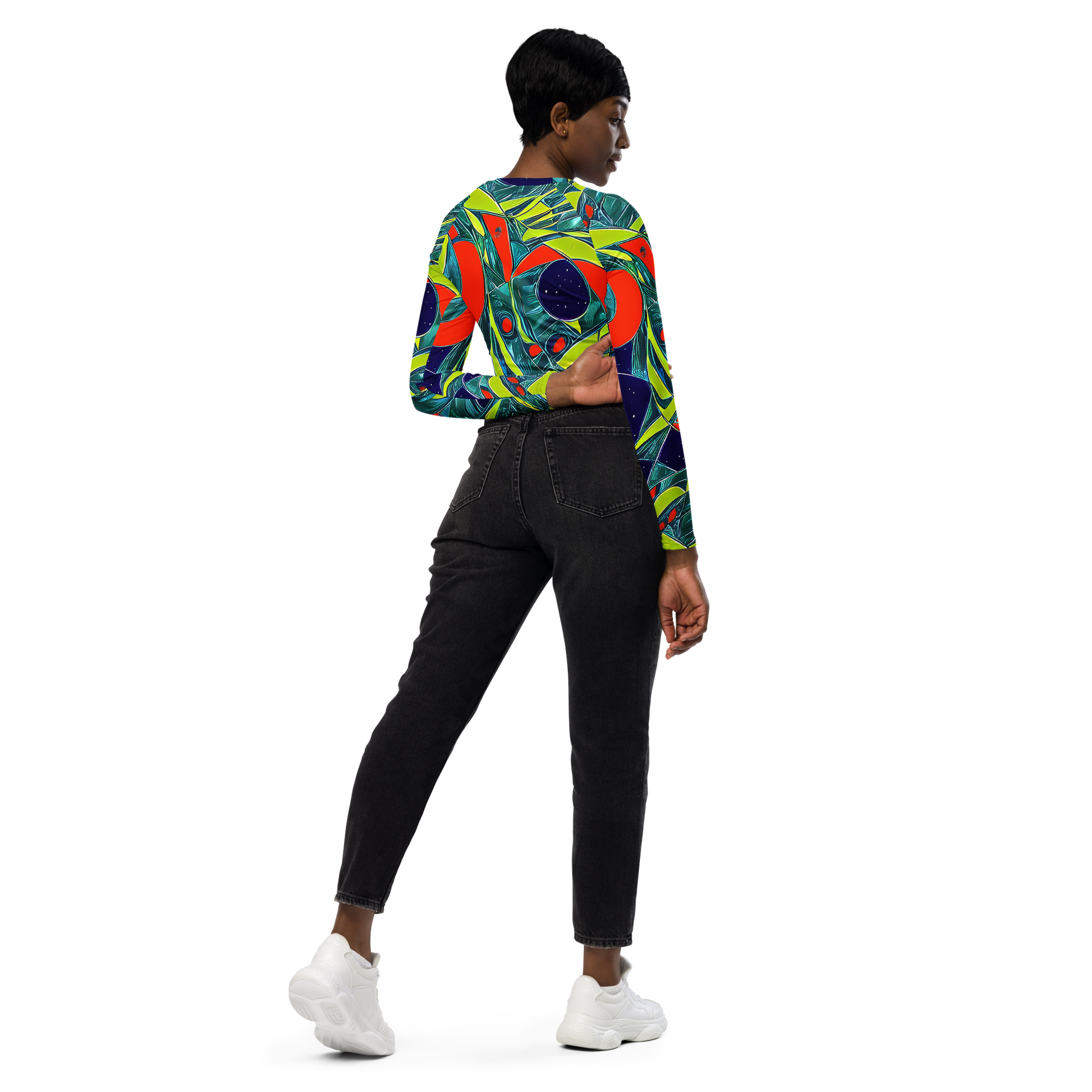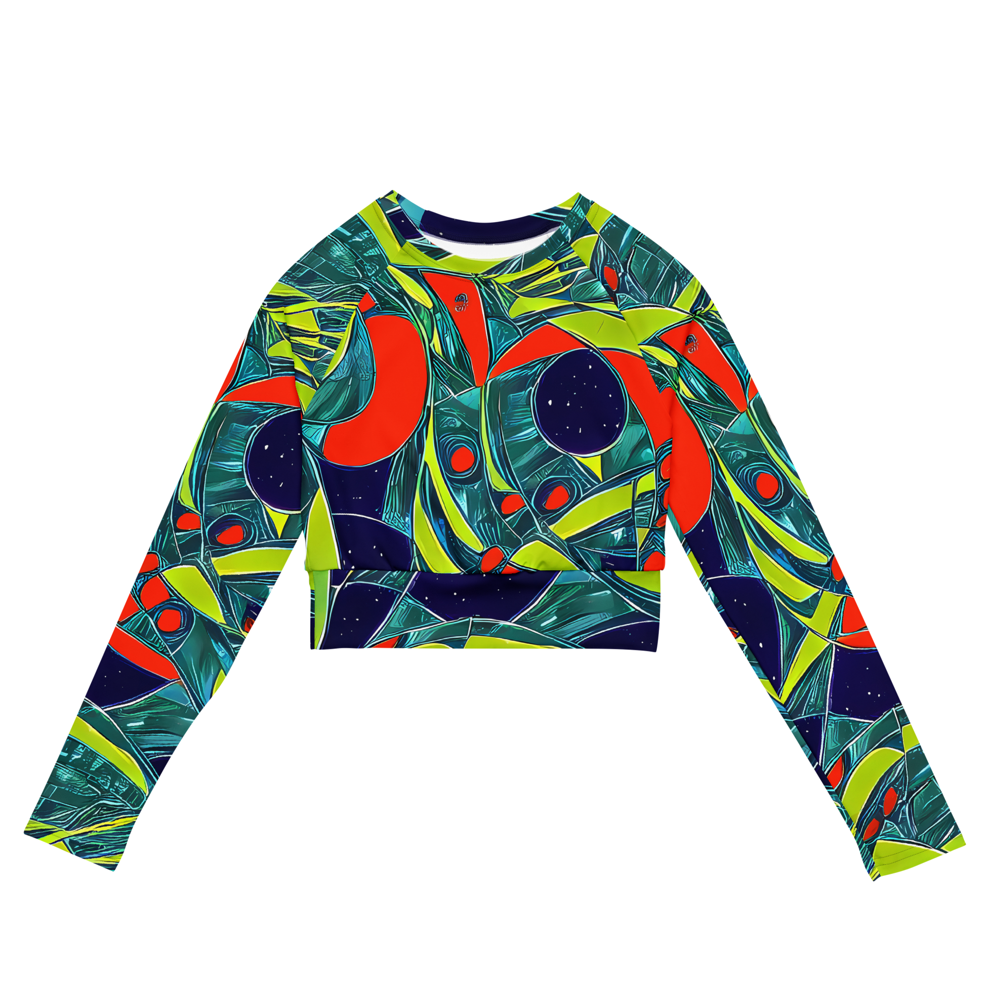 Ignite your style with our stunning Long Sleeve Crop Top featuring the captivating "Harmonic Mirage" pattern! This vibrant tapestry of swirling teal and lime green, accented by bold pops of fiery red against a deep navy backdrop, is perfect for those who embody an adventurous spirit. Crafted with sustainability in mind, this eco-chic top is your go-to for art gallery openings, music festivals, or any occasion where creativity shines. Stand out and express your unique style while being kind to the planet!