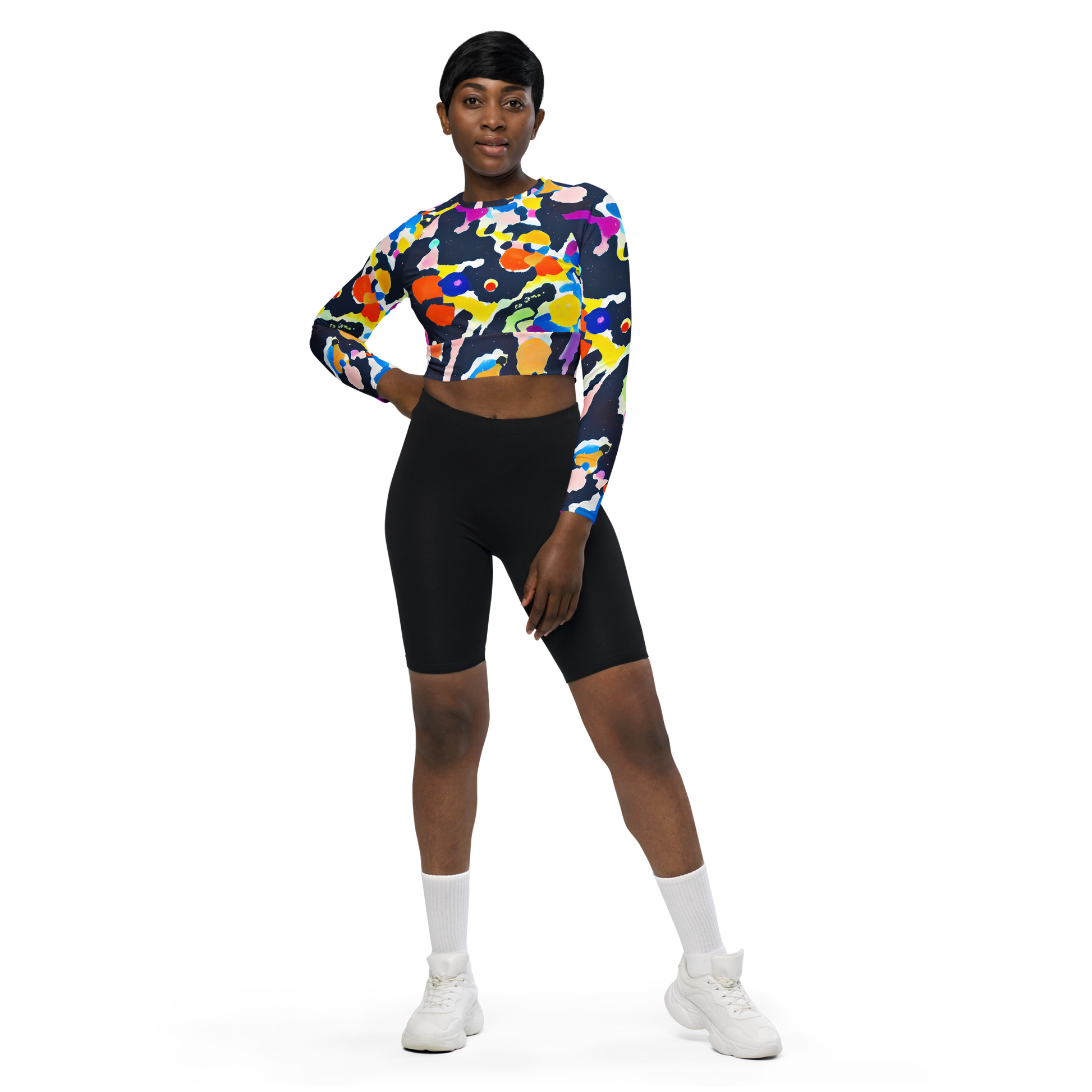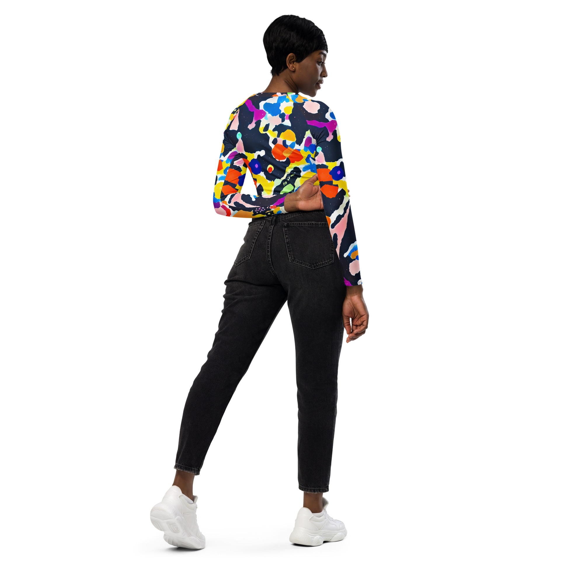Unleash your vibrant spirit with our "Kaleido Burst" Long Sleeve Crop Top! This eye-catching piece features a stunning explosion of electric blue, fiery orange, sunny yellow, and vivid pink against a deep cosmic black background, making it the perfect canvas for your unique style. Crafted with eco-friendly materials and designed for comfort and movement, this top is your go-to for art gallery openings, creative festivals, or any occasion where you want to make a bold statement.