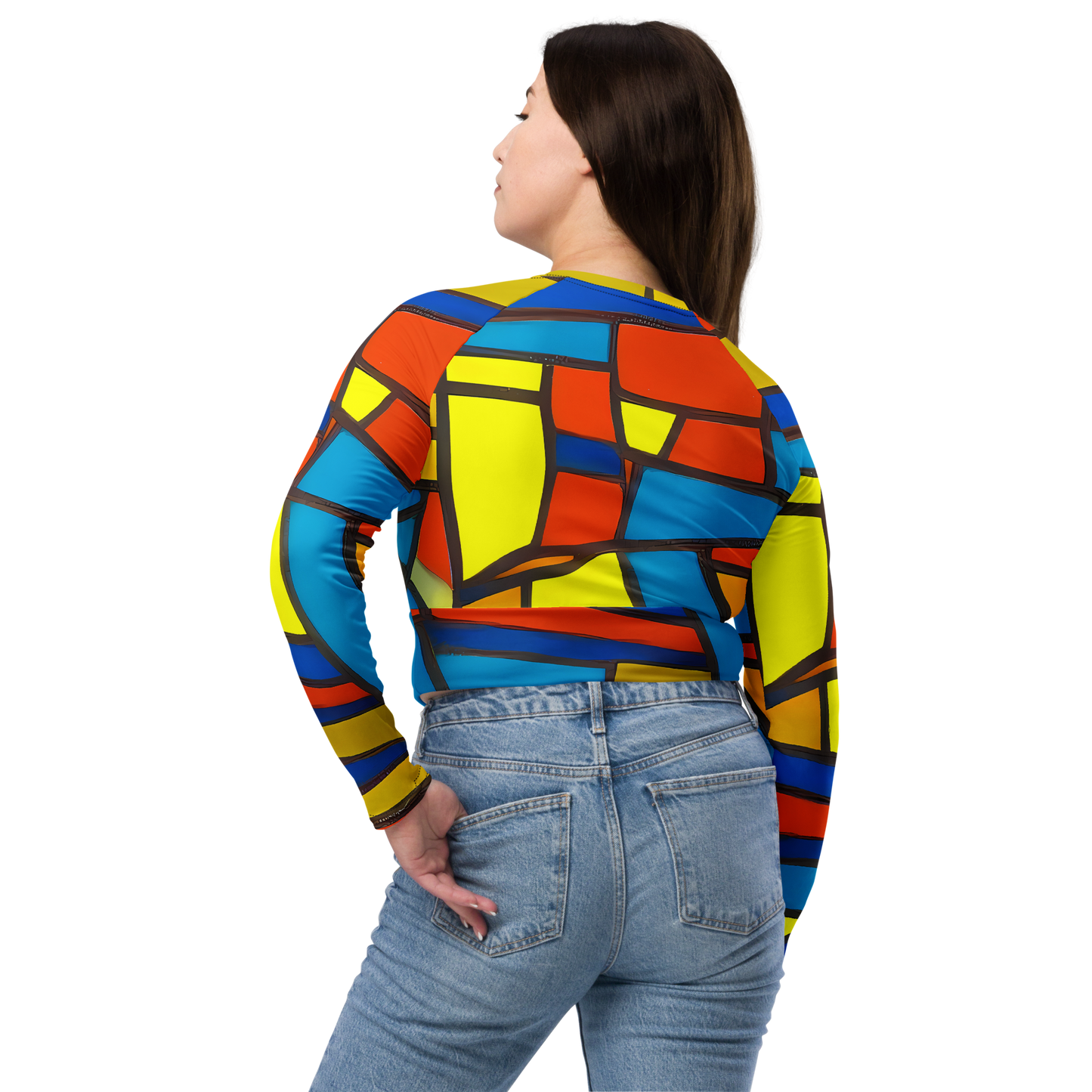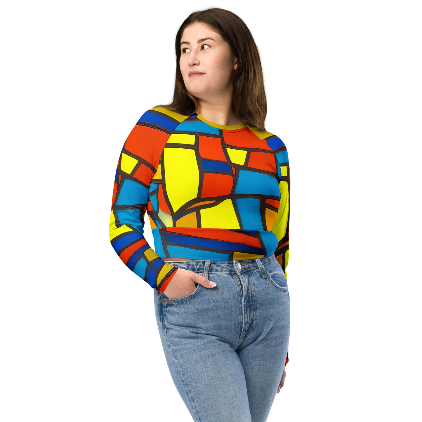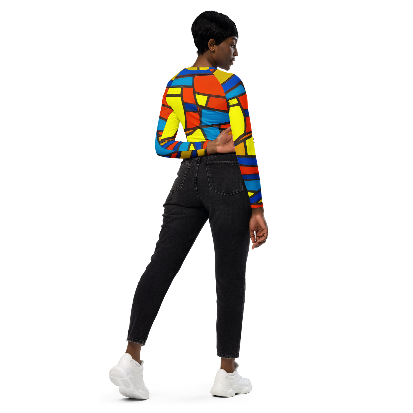 Infuse your wardrobe with the electrifying essence of modern art with our "Mondrian Mesh" Long Sleeve Crop Top. This eye-catching piece features a kaleidoscope of primary colors, bold blues, reds, and yellows, segmented by dynamic black lines that create a mesmerizing stained-glass effect. Perfect for those who want to stand out at any creative gathering or modern art event, this crop top is a wearable masterpiece that captures the spirit of Piet Mondrian's iconic artistry.