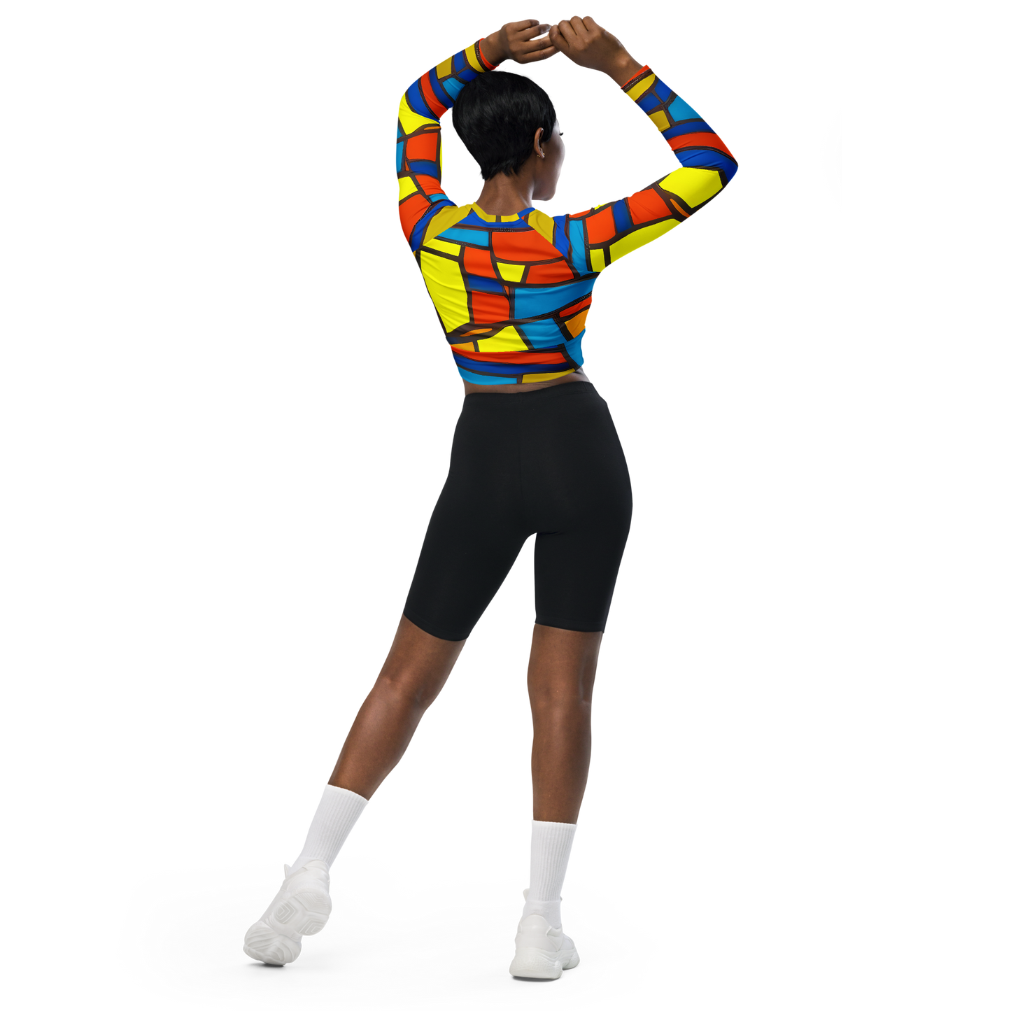 Strike a pose in this statement crop top that's a symphony of color and design. Perfect for the gym, beach, or your next art-inspired outing. Order your "Mondrian Mesh" Long Sleeve Crop Top today and own a piece of wearable art!