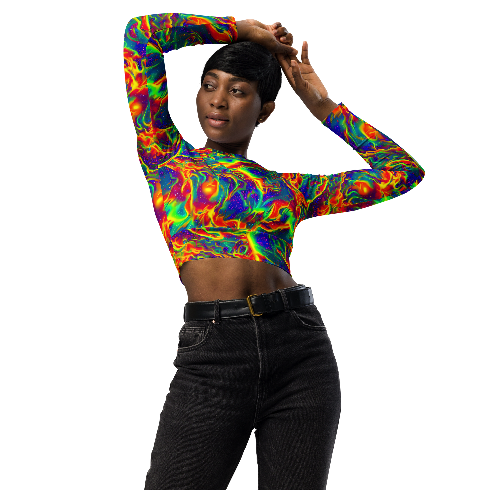 Step into a world of cosmic flair with our "Nebula Symphony" Long Sleeve Crop Top! This vibrant piece is a celebration of individuality, featuring a stunning tapestry of electric blues, fiery oranges, and radiant greens that dance across the fabric like a celestial masterpiece. Perfect for music festivals, art shows, or simply making a bold statement, this eco-chic top combines style and sustainability, ensuring you shine bright while being kind to the planet.