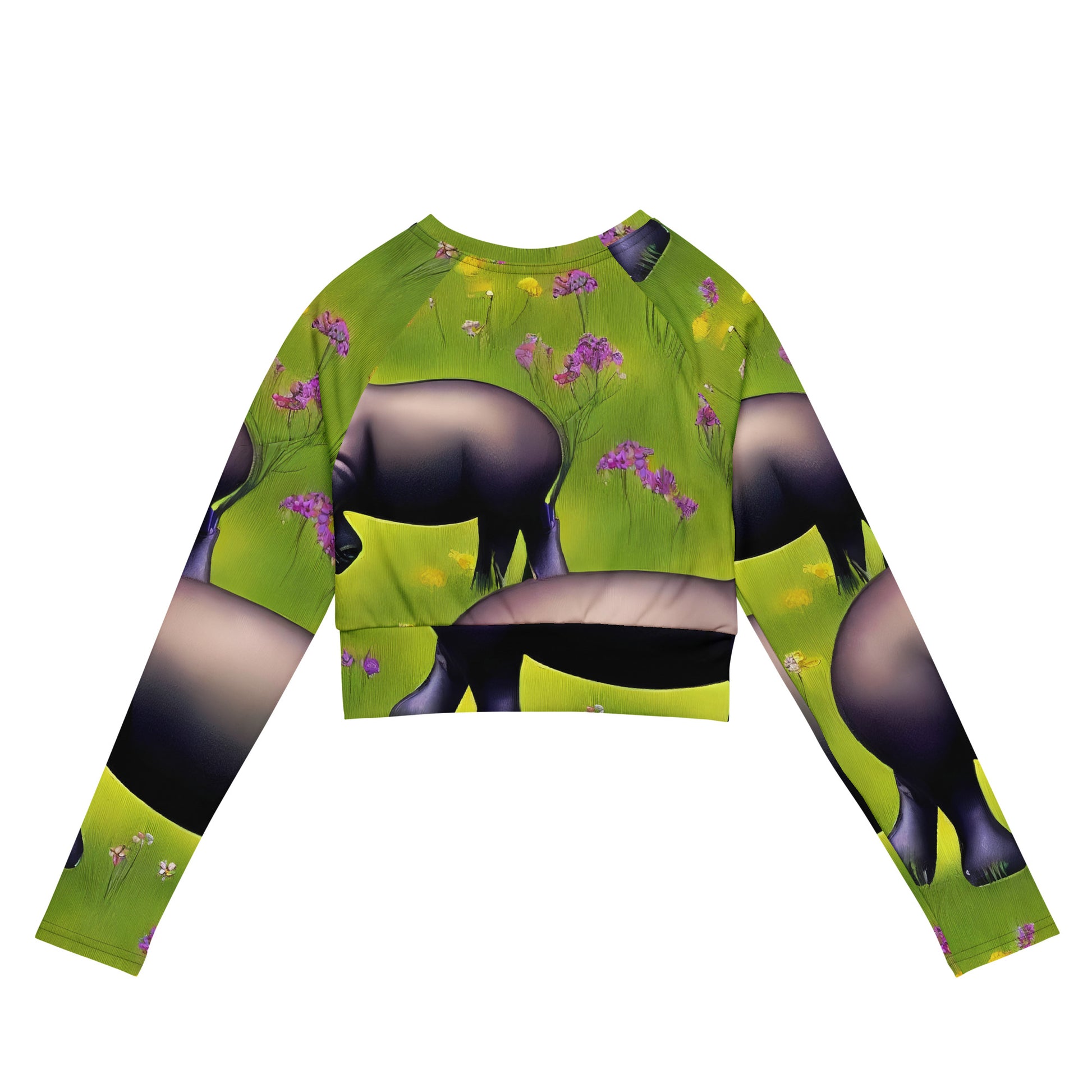 Step into a world of playful elegance with our "Verdant Safari" Long Sleeve Crop Top! Adorned with a vibrant tapestry of lush greens and whimsical baby hippos frolicking amidst vivid wildflowers, this top is perfect for those who embrace their curious spirit. Crafted from eco-friendly materials, it not only makes a bold fashion statement but also nurtures the planet. Whether you're attending a garden party or enjoying a sunny day out, this crop top combines style, comfort, and sustainability seamlessly.