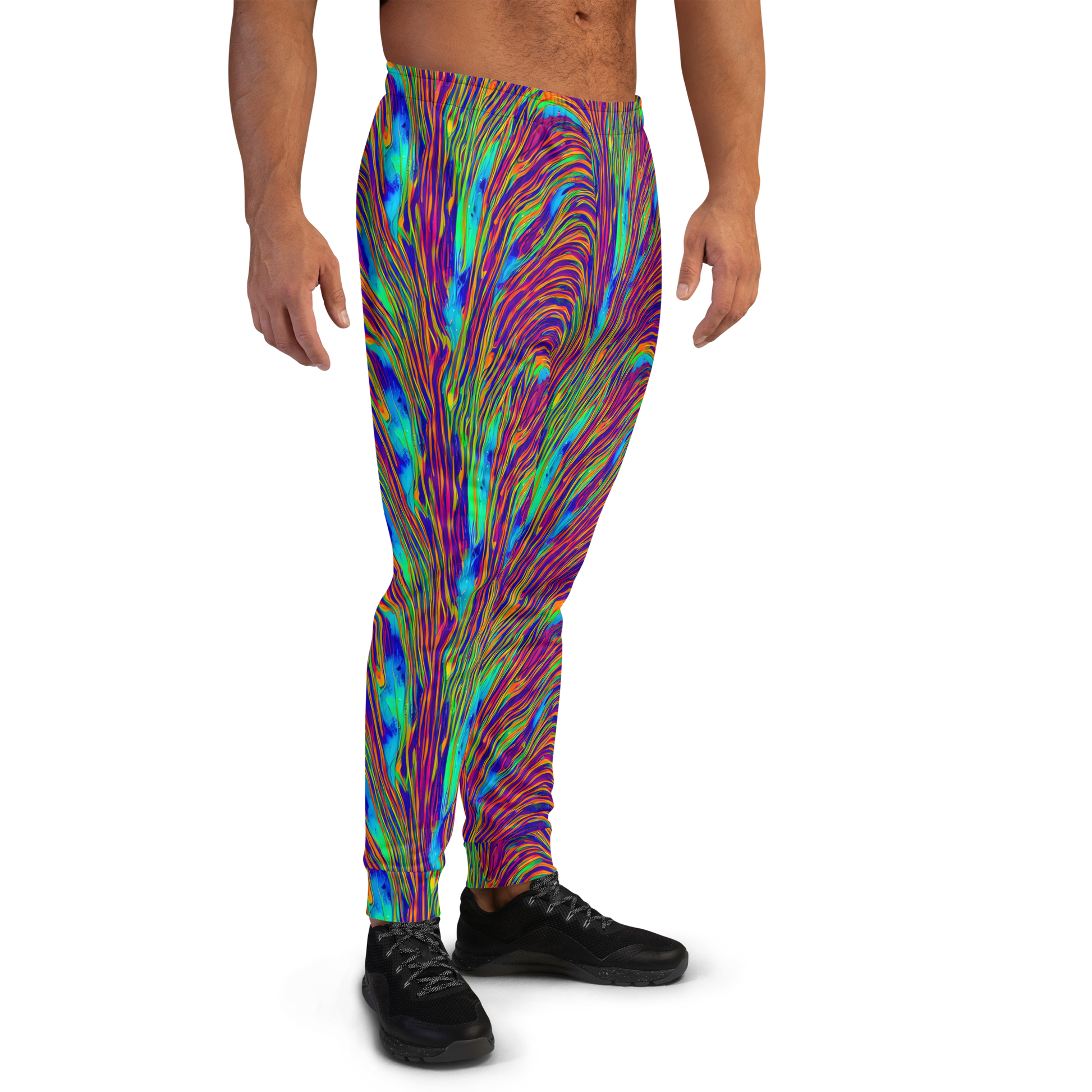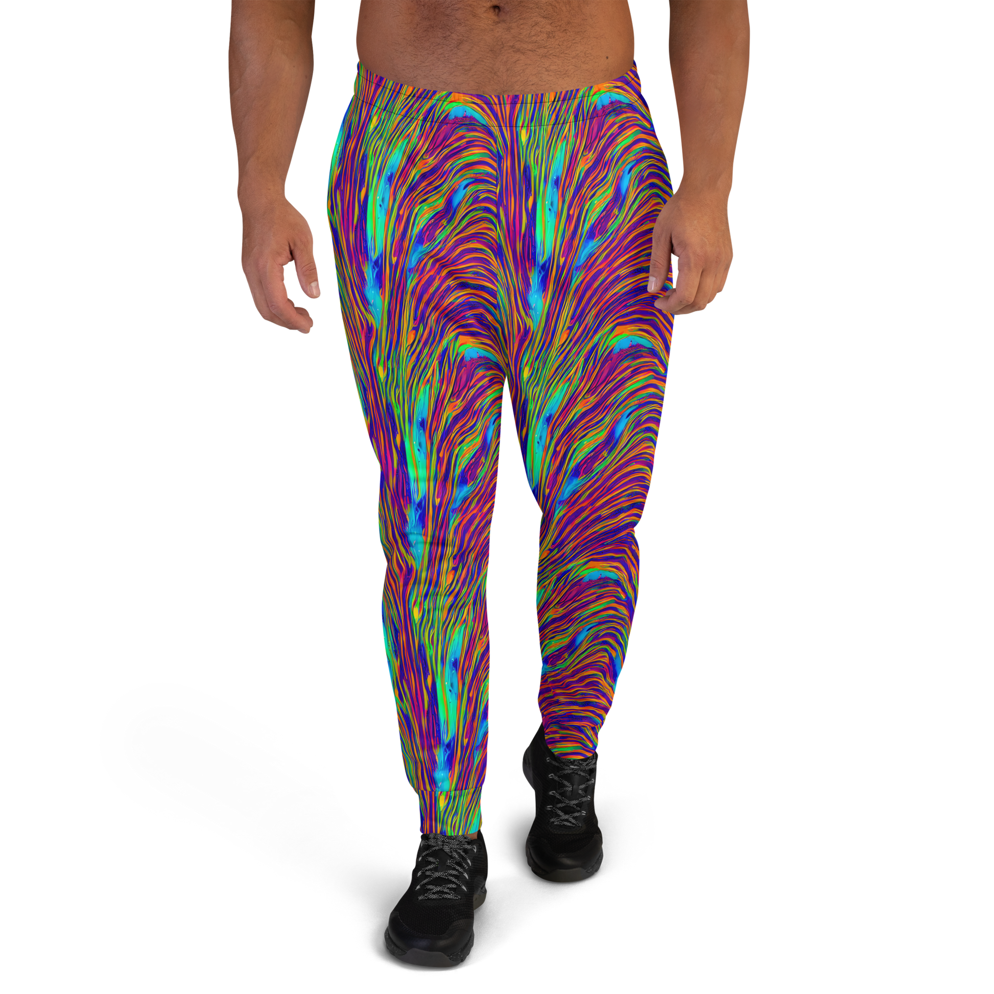 Step into a world of vibrant energy and unparalleled style with our AI-designed joggers, featuring a mesmerizing pattern of electric blues, fiery oranges, vivid purples, and neon greens. These dynamic swirls create a wave-like texture that exudes a futuristic, avant-garde vibe, perfect for bold personalities and artistic souls. Ideal for music festivals, art exhibitions, or any event that celebrates creativity, these joggers are your go-to for spring and summer wear, adding a splash of psychedelic energy to your wardrobe.