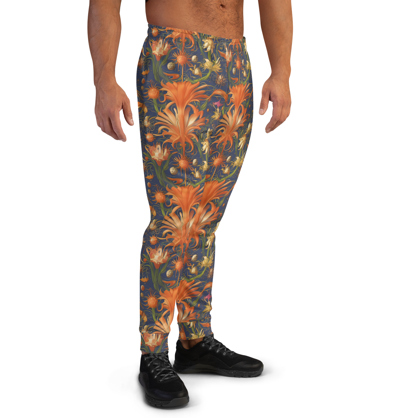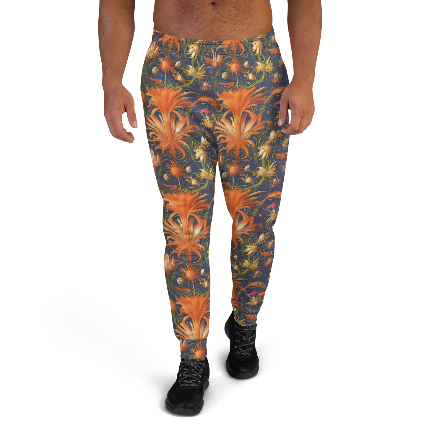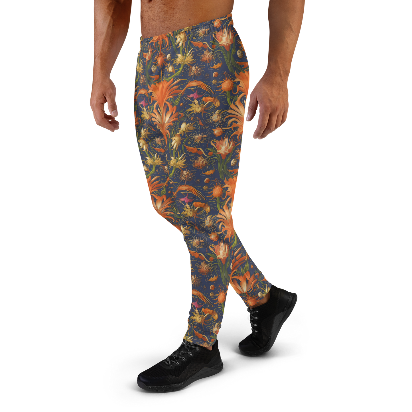 Unleash the splendor of the cosmos with our latest Men's Joggers, draped in a vibrant tapestry of orange, yellow, and cream florals, set against a deep blue nocturnal canvas. Each stride is a step into a universe where fashion meets the enigmatic charm of a starry night, perfect for those who find solace in the arts and the endless beauty of the cosmos. These joggers are a sartorial choice for the modern man who values comfort without sacrificing an ounce of style.