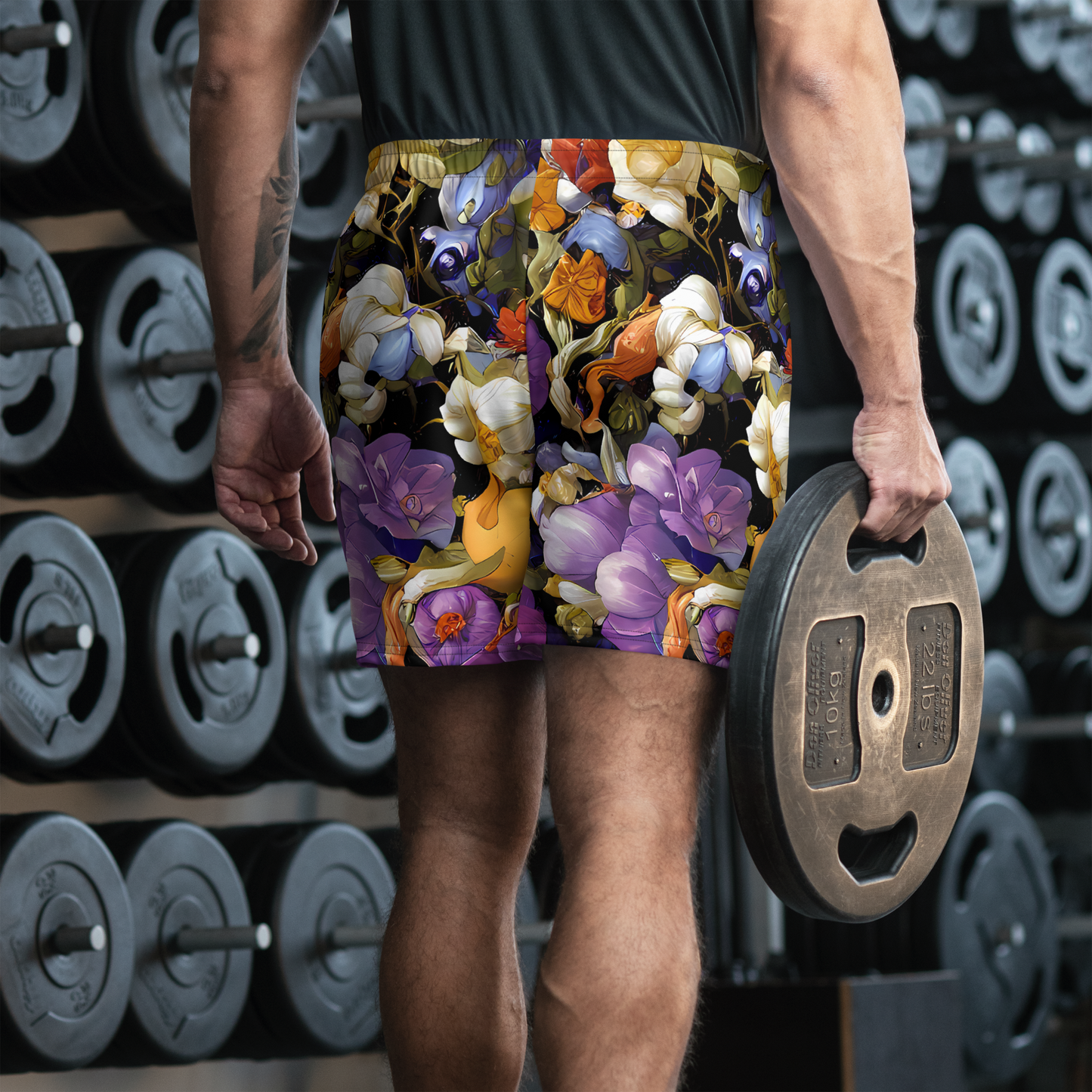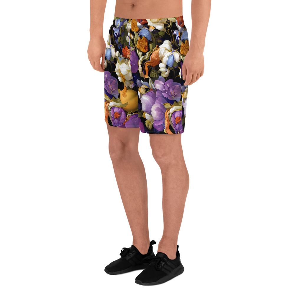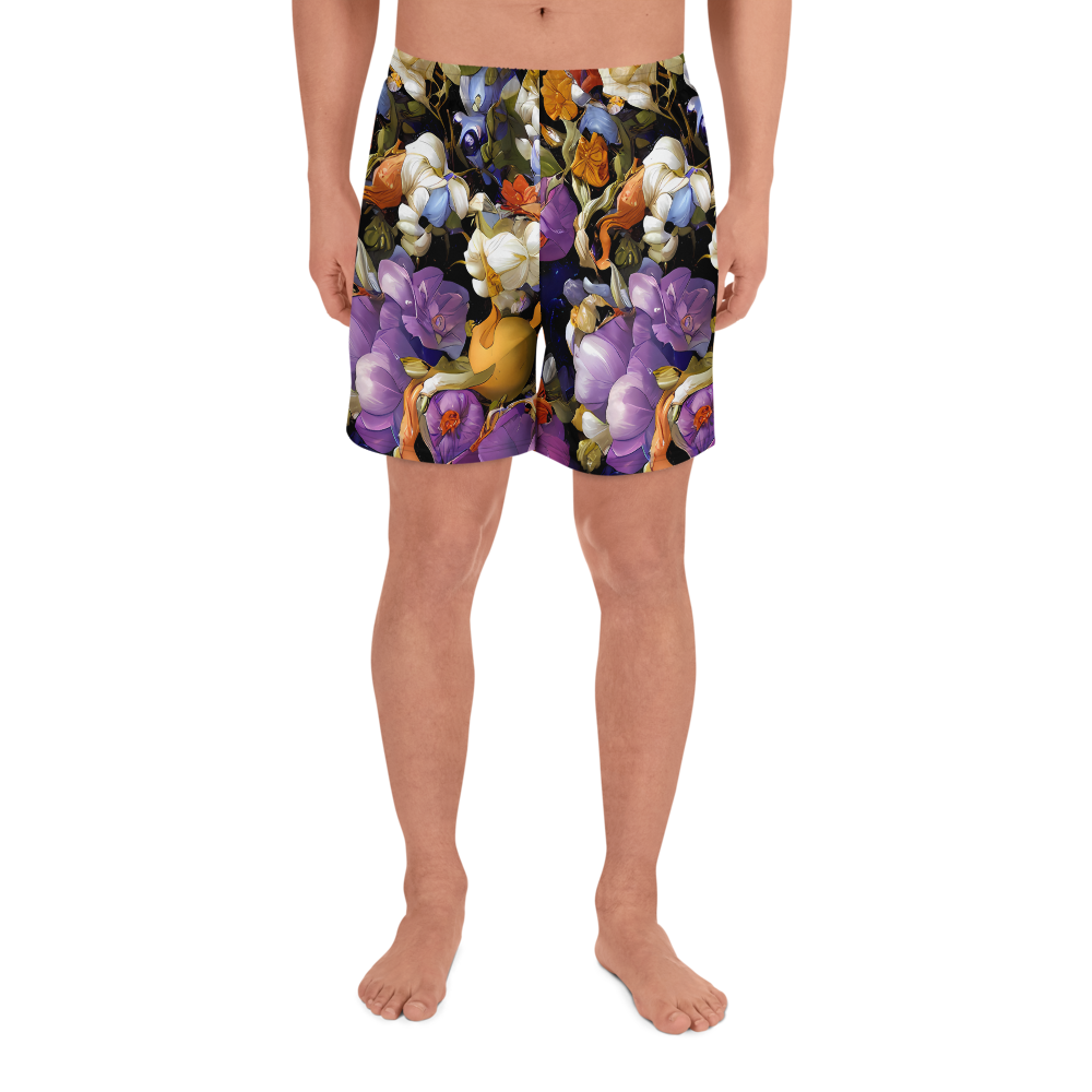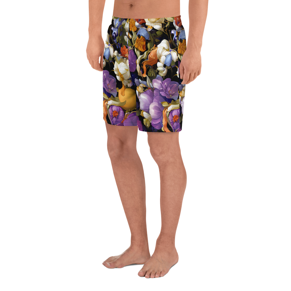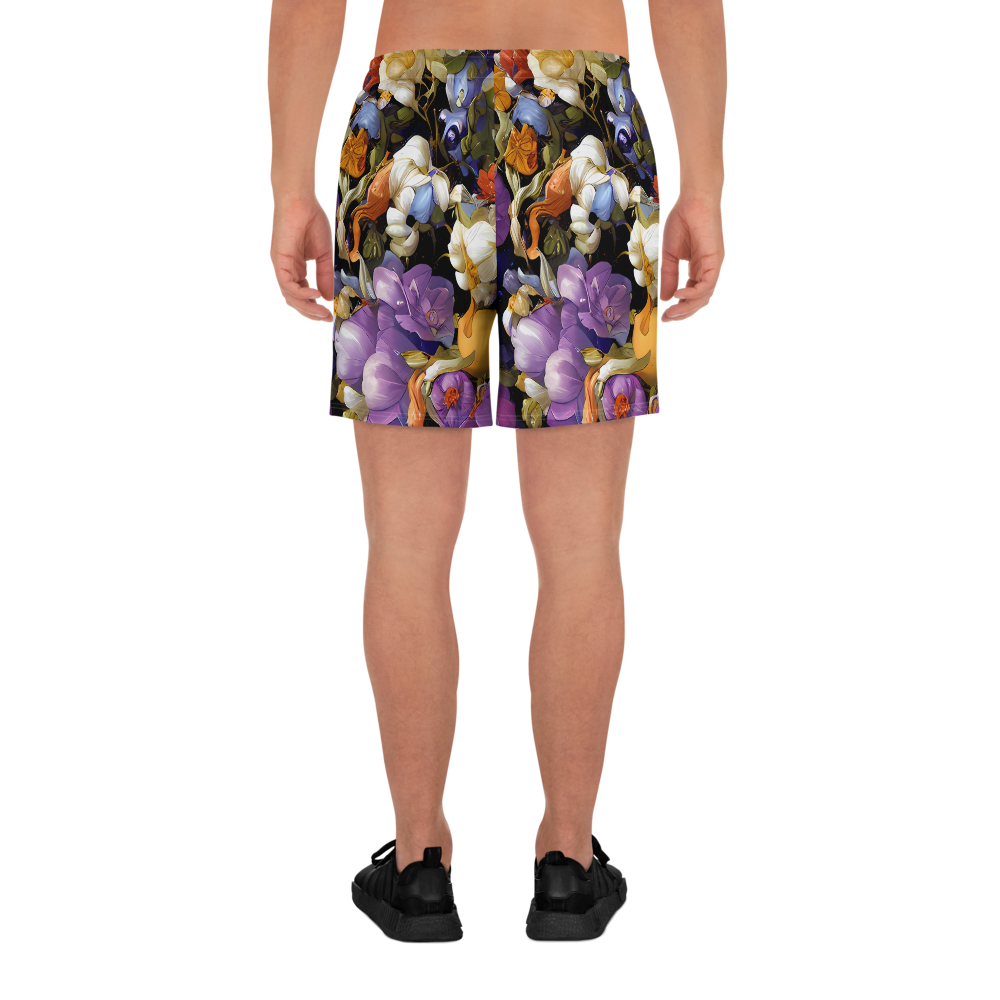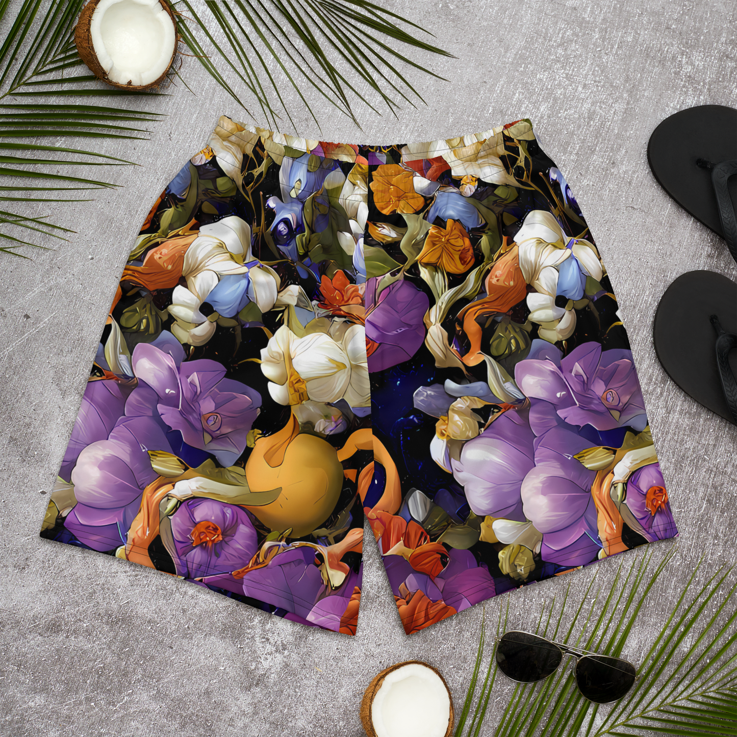 Unleash the artist within and elevate your athletic wardrobe with our Men's Athletic Shorts, featuring an exquisite pattern that weaves together the majesty of a painter's palette. Rich purples, deep blues, and warm oranges bloom across the fabric in a floral symphony that captures the essence of autumnal elegance and classical artistry. Perfect for those who seek to make a bold statement with their active wear, these shorts are not just a piece of clothing, but a wearable masterpiece.