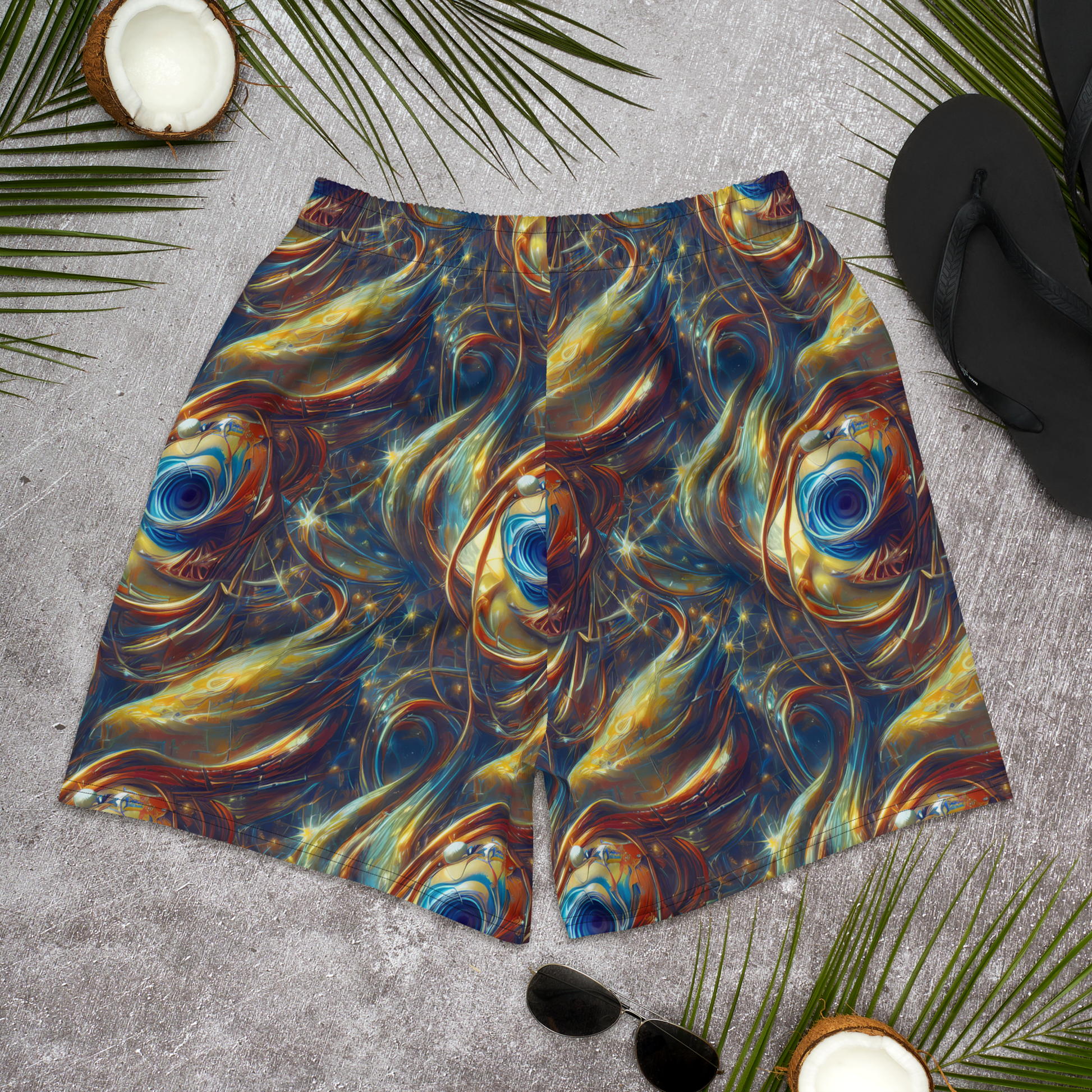 Maximize your performance and captivate attention with our custom-designed long shorts, featuring a mesmerizing pattern that swirls with deep cosmic blues, fiery oranges, and shimmering golds. Evoking a sense of wonder and mysticism, these shorts are perfect for bold, imaginative personalities ready to make a statement during avant-garde events, music festivals, or art exhibitions. Ideal for the fall and winter seasons, these shorts ensure you look unique, even while breaking a sweat.